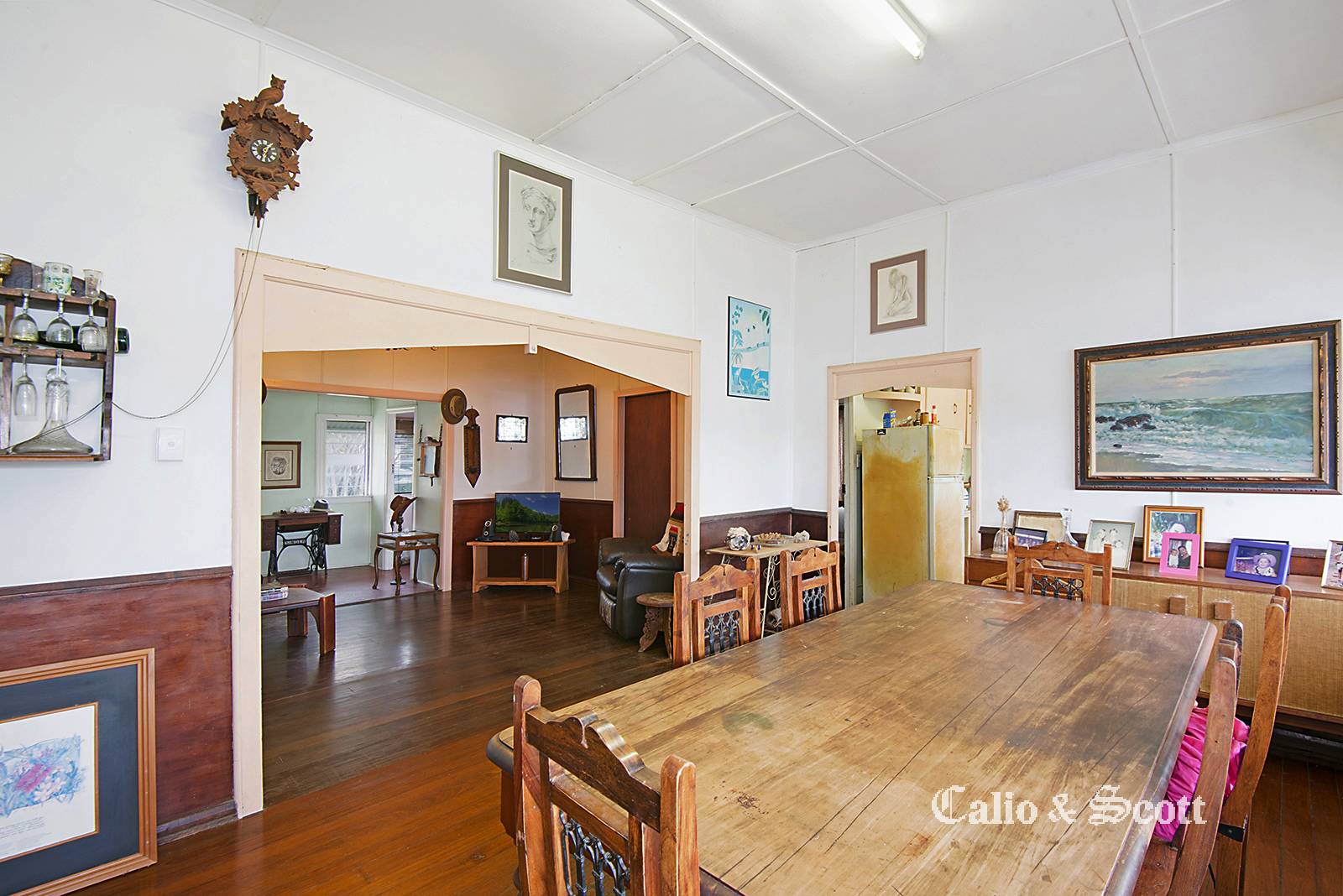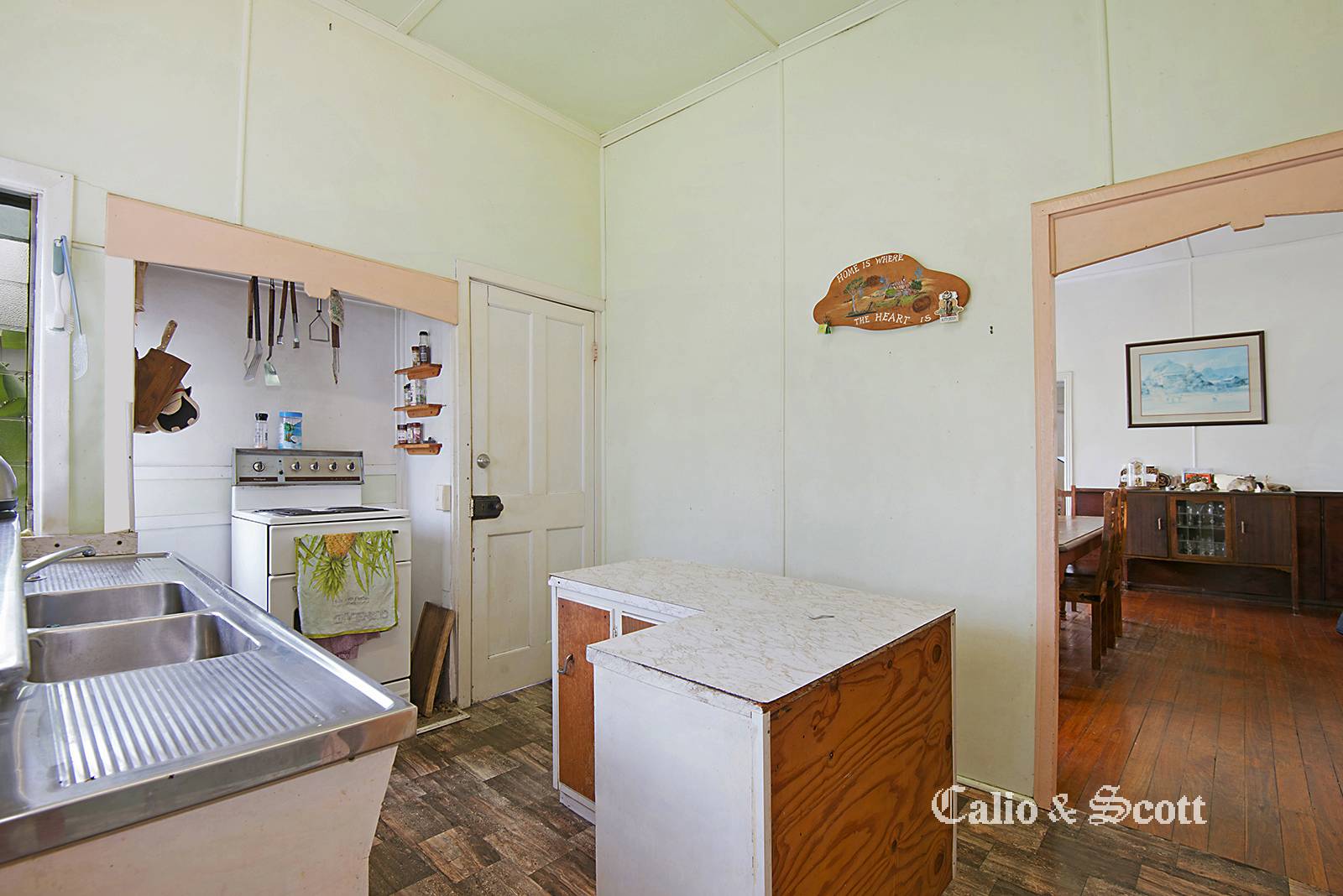 Located on a high and dry block with 16.7 metre frontage the weatherboard home has separate lounge and dining rooms, 2 bedrooms & 2 sleepouts upstairs. The kitchen & bathroom are in original condition & there are 2 store rooms, laundry and 2nd w.c. downstairs.