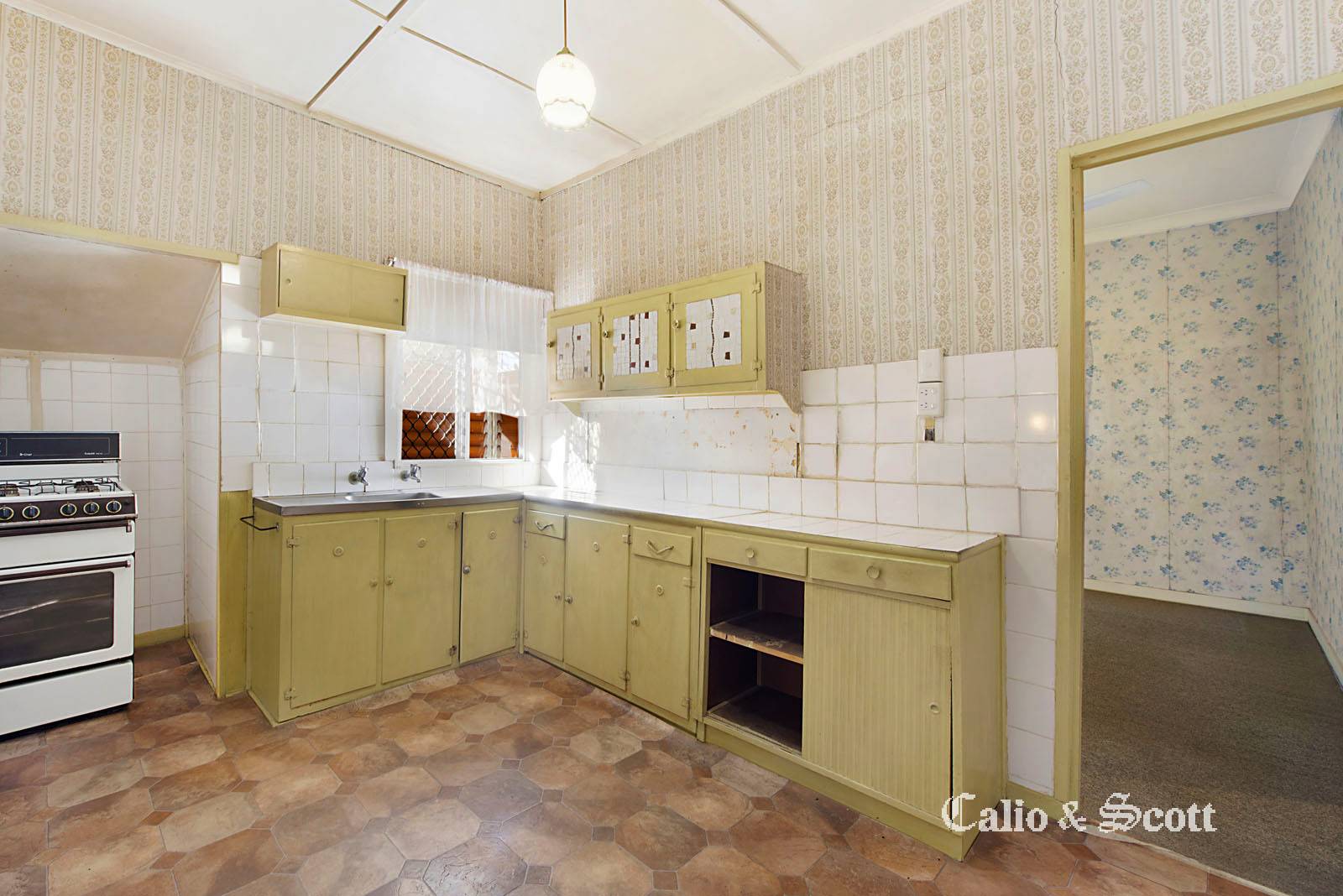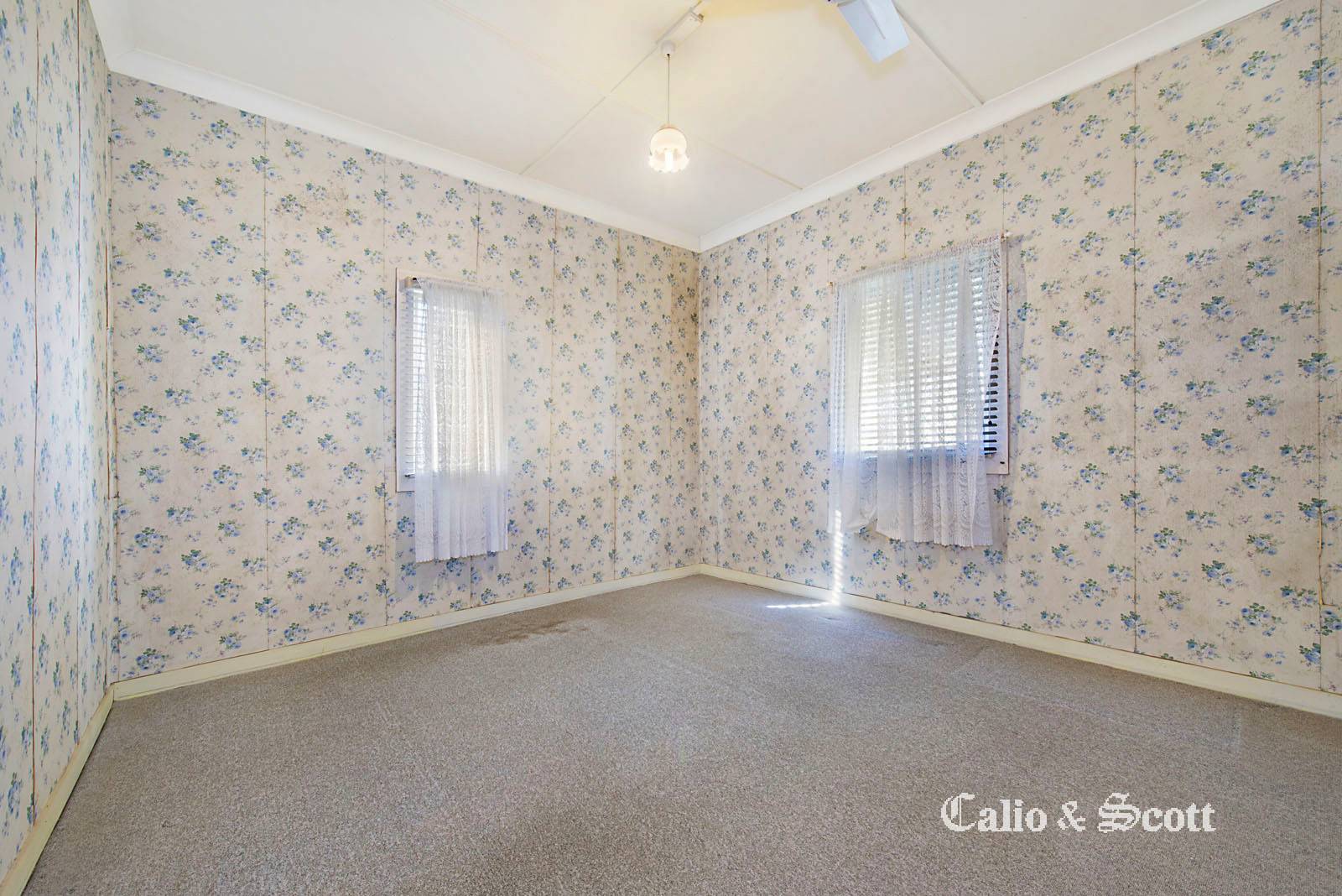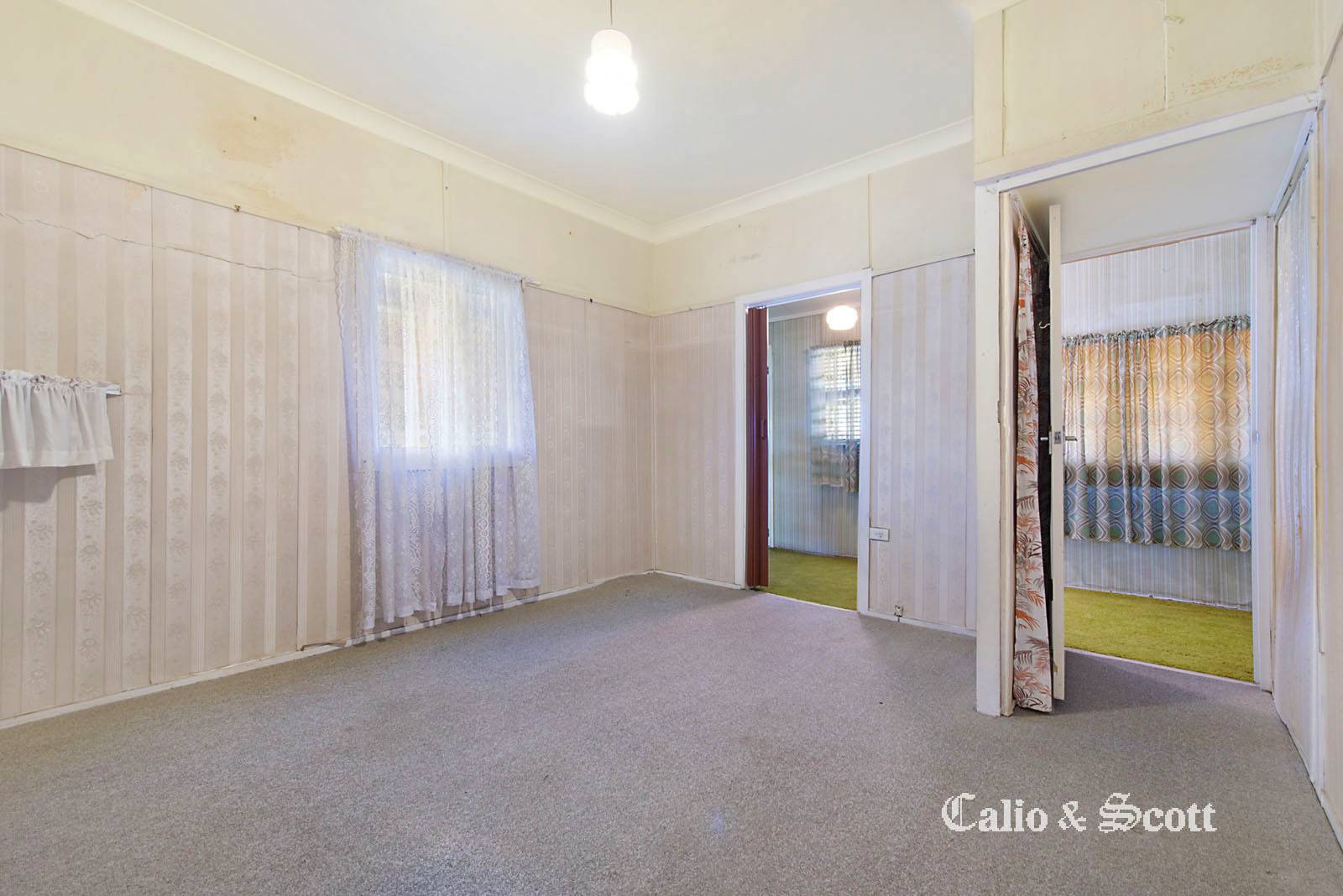 The existing 2 bedroom home which requires renovation has a separate lounge, front sunroom and original kitchen and bathroom.