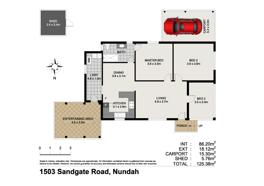 Outdoor relaxing and entertaining is catered for with a great covered patio area at the rear. Large enough for family and friends, plus BBQ and also housing space for your furry friends without any fuss. Cover carport for single vehicle parking could be added to with enough space in the front yard for the current garden shed plus space to add another carport.