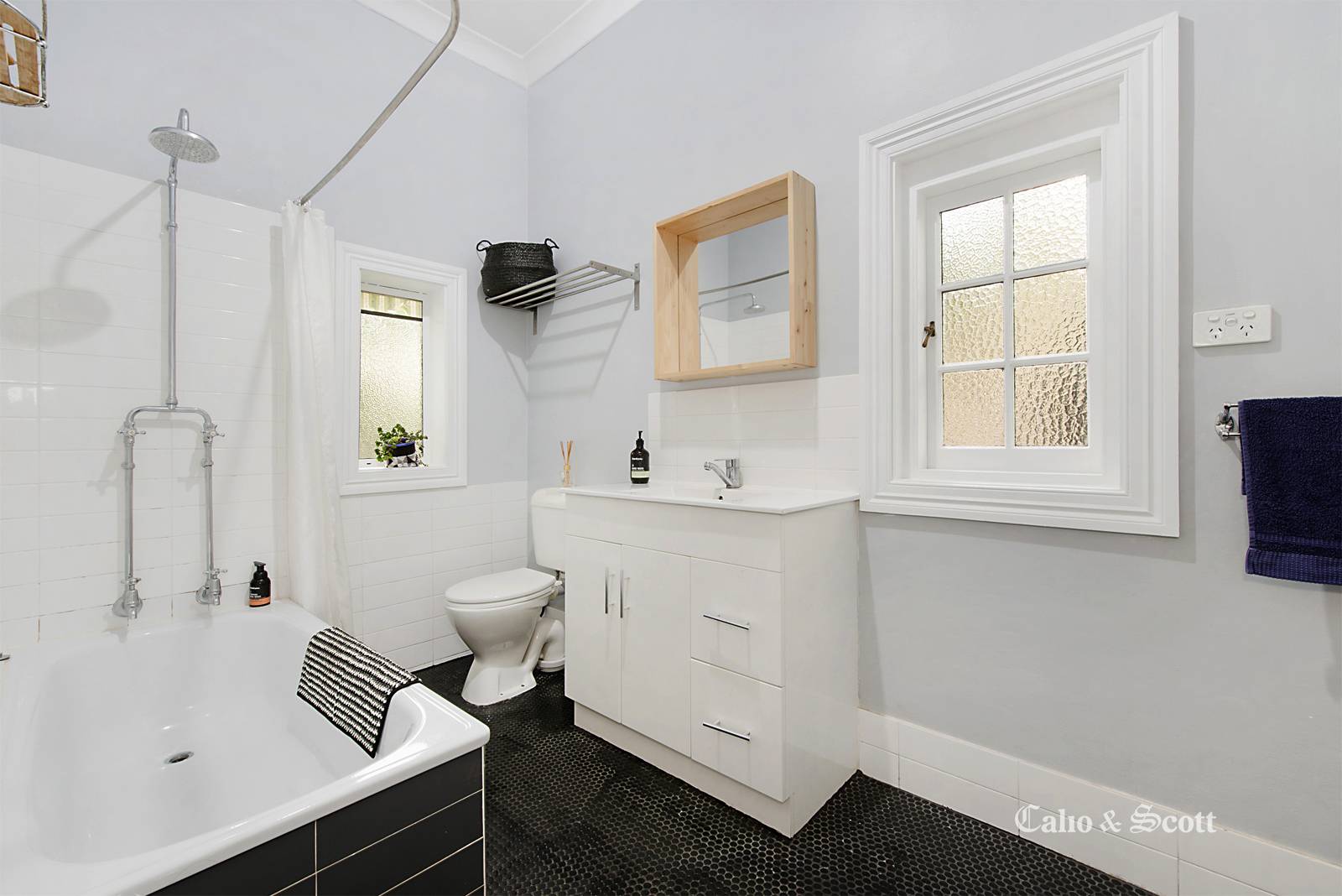 The kitchen features stainless steel dishwasher, plenty of bench space, great natural light and is serviced by the adjoining dining space. Cathedral styled ceilings throughout in keeping with the era of construction provide great ventilation and natural light.