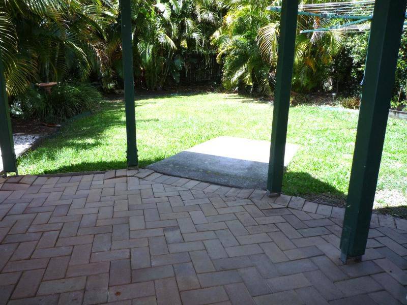The rear yard has landscaped gardens, a covered paved patio area and high rear fencing.