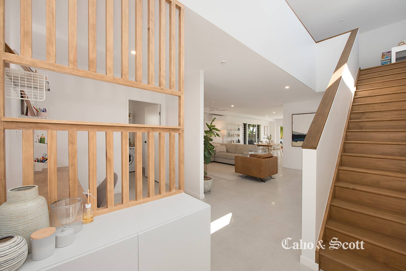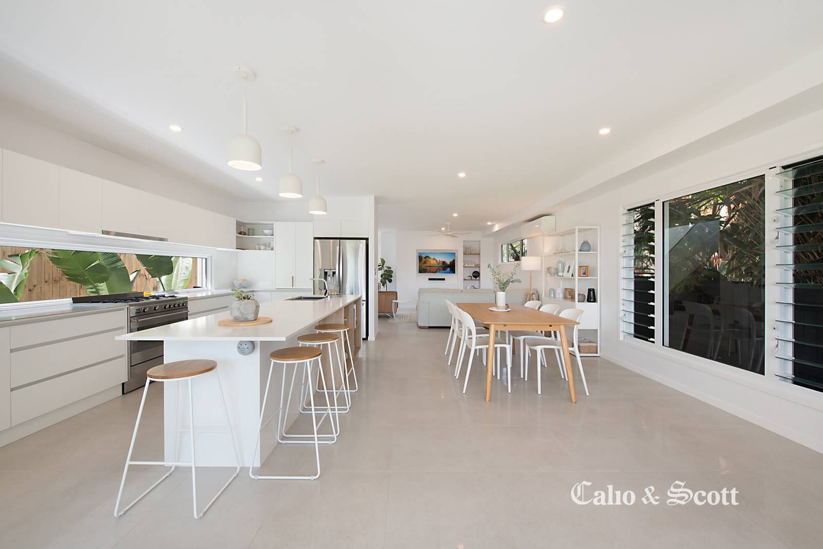 - Bright, naturally lit expansive open plan tiled living area on entry,