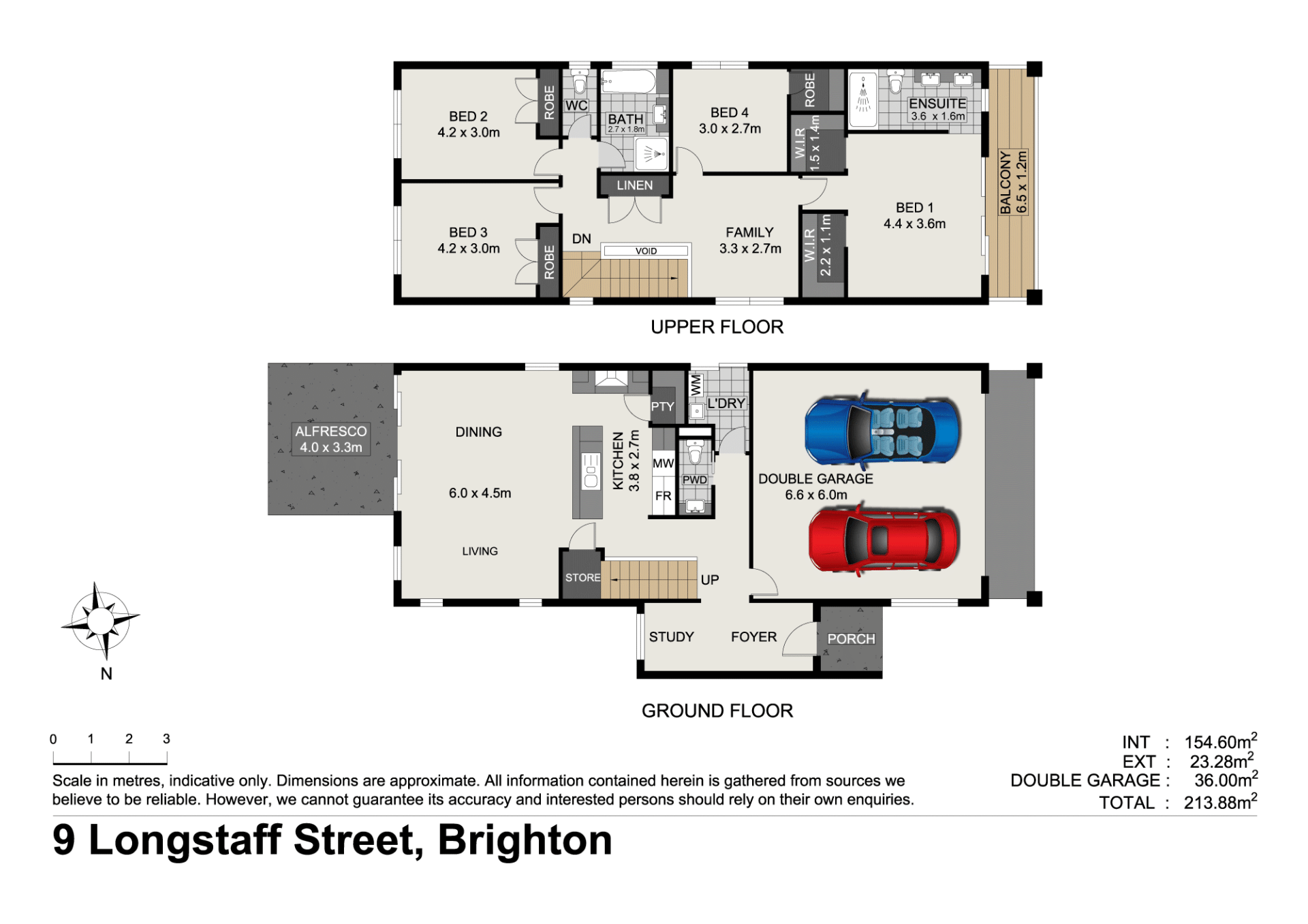 * Air-conditioned master bedroom with his and her's walk-in robes, ensuite with double vanity, over sized shower and access to the front balcony to enjoy an afternoon sunset