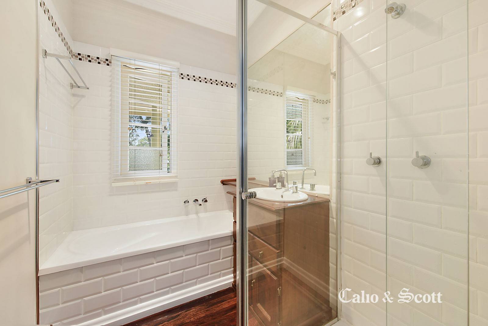 The kitchen showcases an amazing Red Gum slab timber benchtop with new tiled splash-back and charming lead-light pendants overhead illuminating the work surfaces. An updated bathroom with beveled edge subway tiles and two double sized bedrooms complete the upper level.