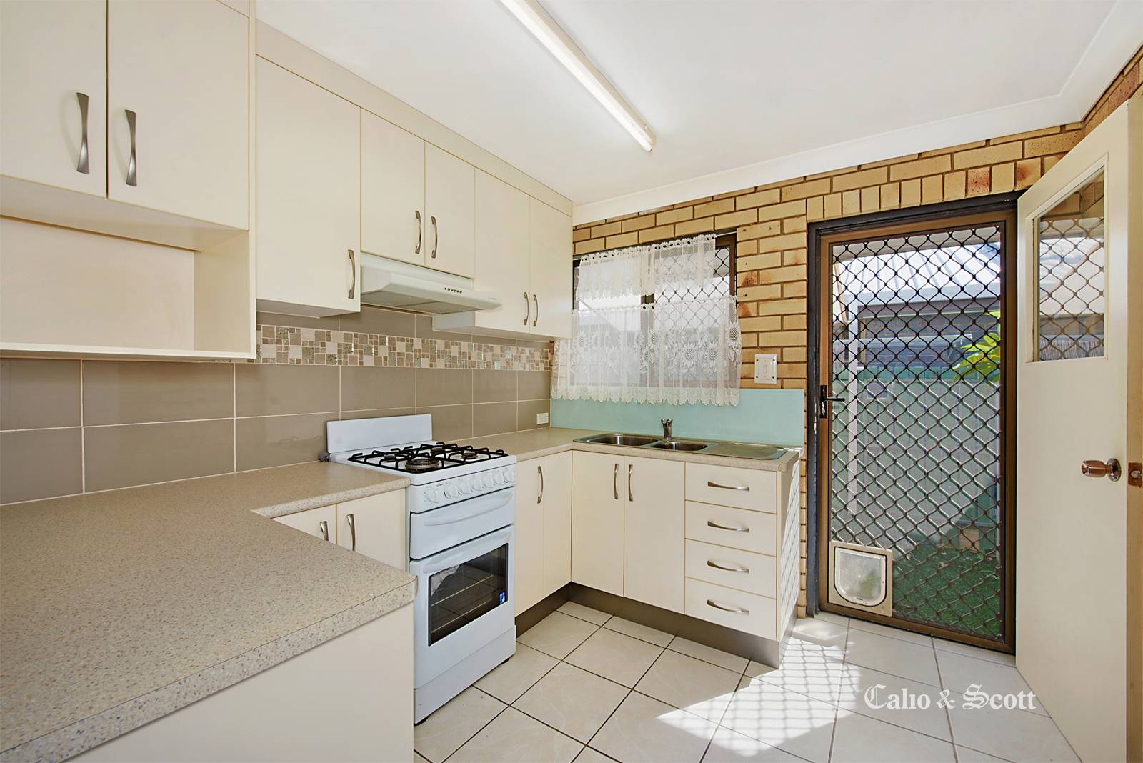 The property has been freshly painted with a modern colour scheme, the modernized kitchen has an updated tiled splashback and features gas appliances.  Both bedrooms have built in robes (main with mirrored doors), modern window roller blinds and security screening providing privacy and peace of mind.