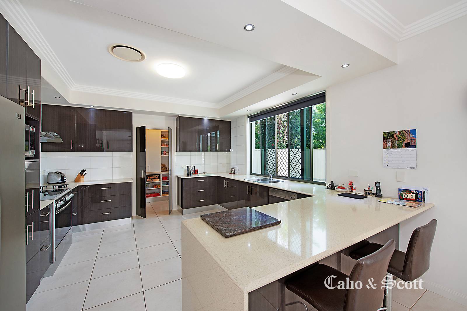 - Huge kitchen overlooking the pool, stone benchtops, stainless steel appliances, large adjoining pantry;