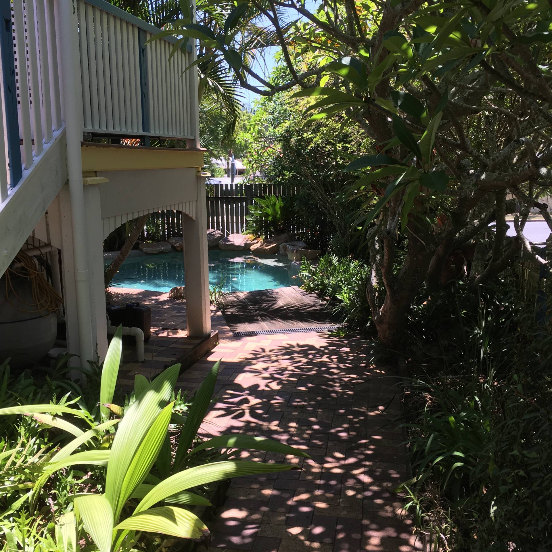 Downstairs there is an undercover entertaining space which has bar style access through timber windows from a multipurpose area which currently houses the laundry as well as for your convenience a second full bathroom.  This charming area overlooks the sparkling in-ground pool with feature timber decking and walk-in edge which inspires you to think you are on your most favourite tropical holiday. The lush mature landscaping guarantees your privacy is assured.