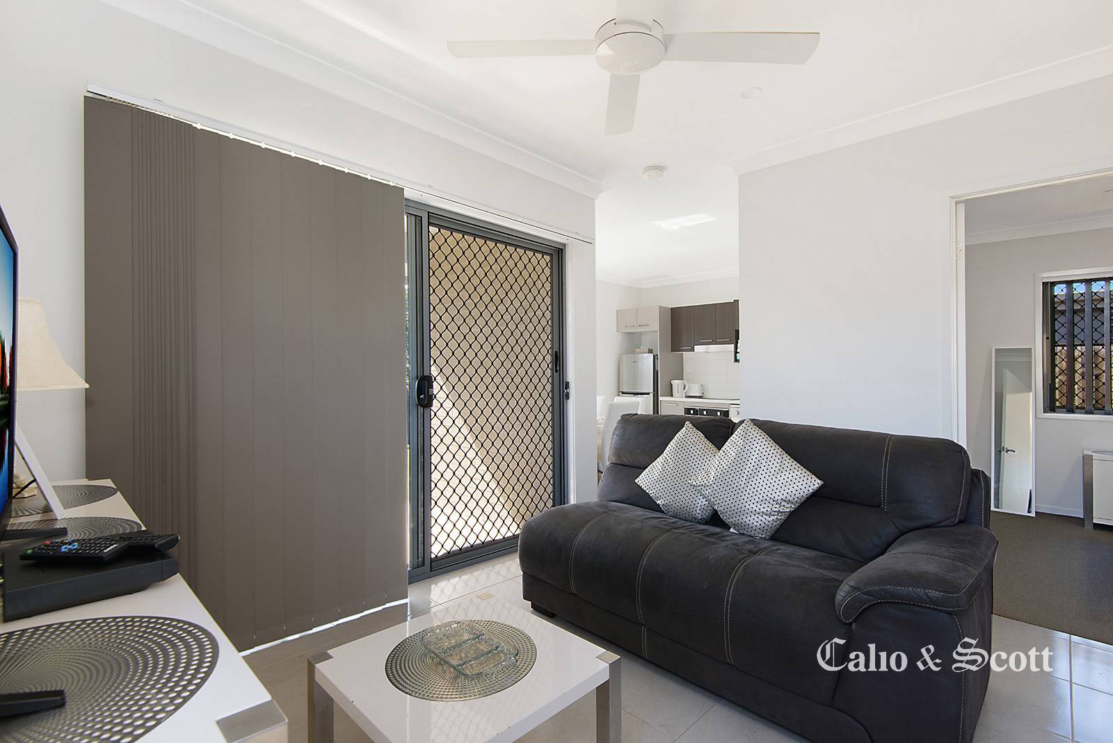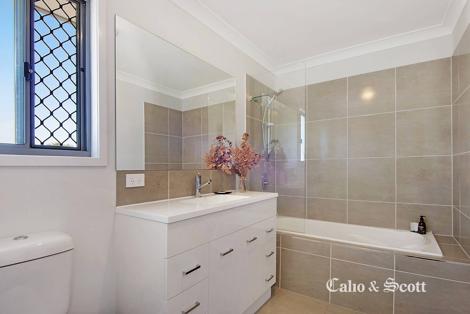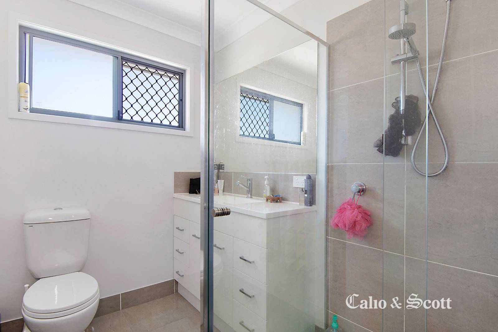 Private tiled air-conditioned living areas downstairs include 2 separate kitchens and bathrooms featuring modern Essa stone bench tops and higher 2.55 metre ceilings. There is also 2 alfresco covered patios with access to a rear lawn area with secure high fencing.