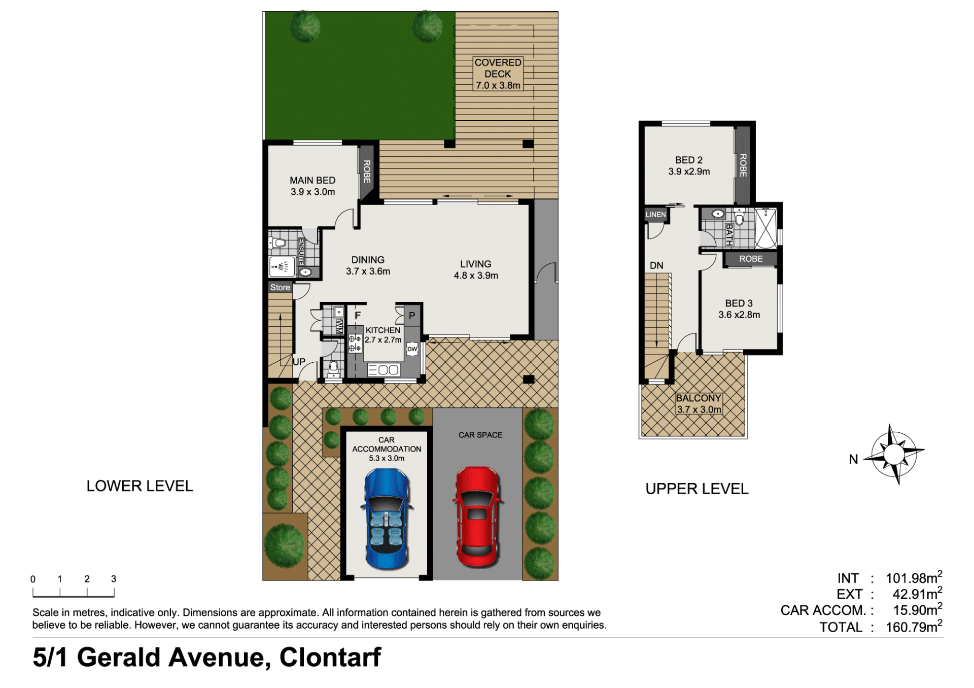 - Timber decking with undercover outdoor entertaining area & artificial grass courtyard;