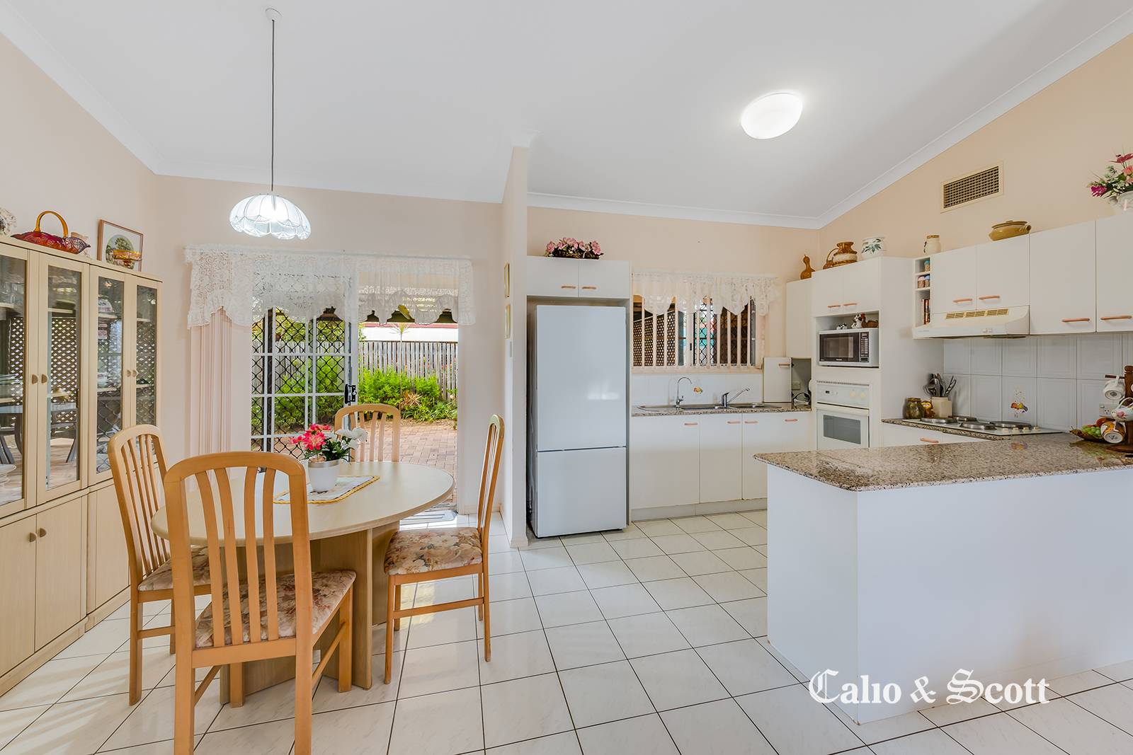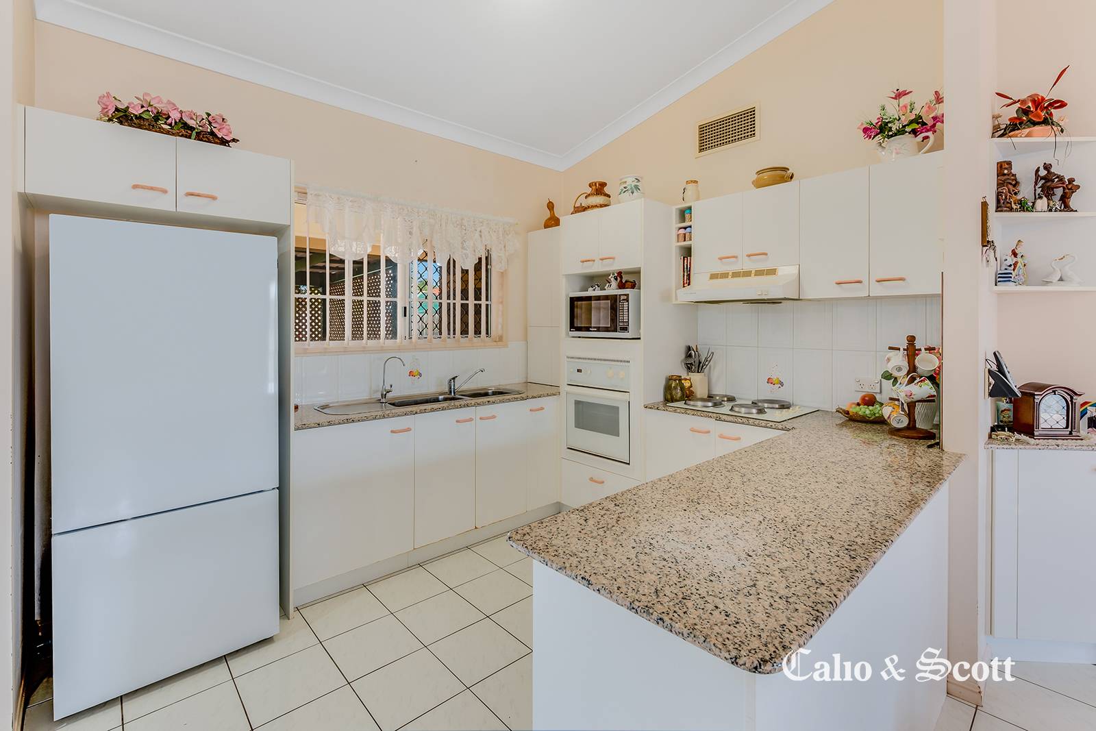 The well planned kitchen has granite bench tops, electrical appliances and ample cupboard storage space.