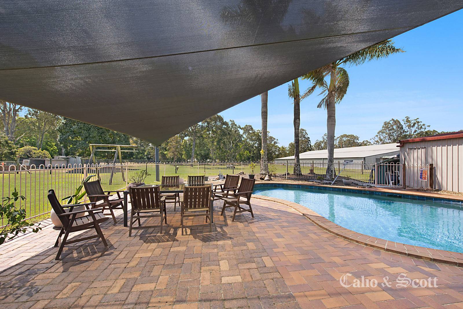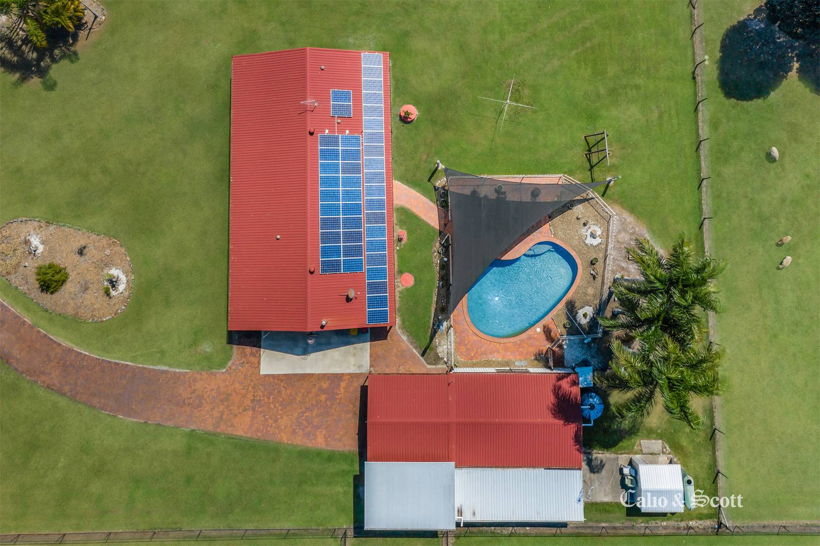 Residing on a magnificent 8017sqm level allotment with 50 metre frontage this four (4) bedroom double brick steel frame home has expansive living areas, including front and rear full width verandahs and sparkling in-ground salt water pool.