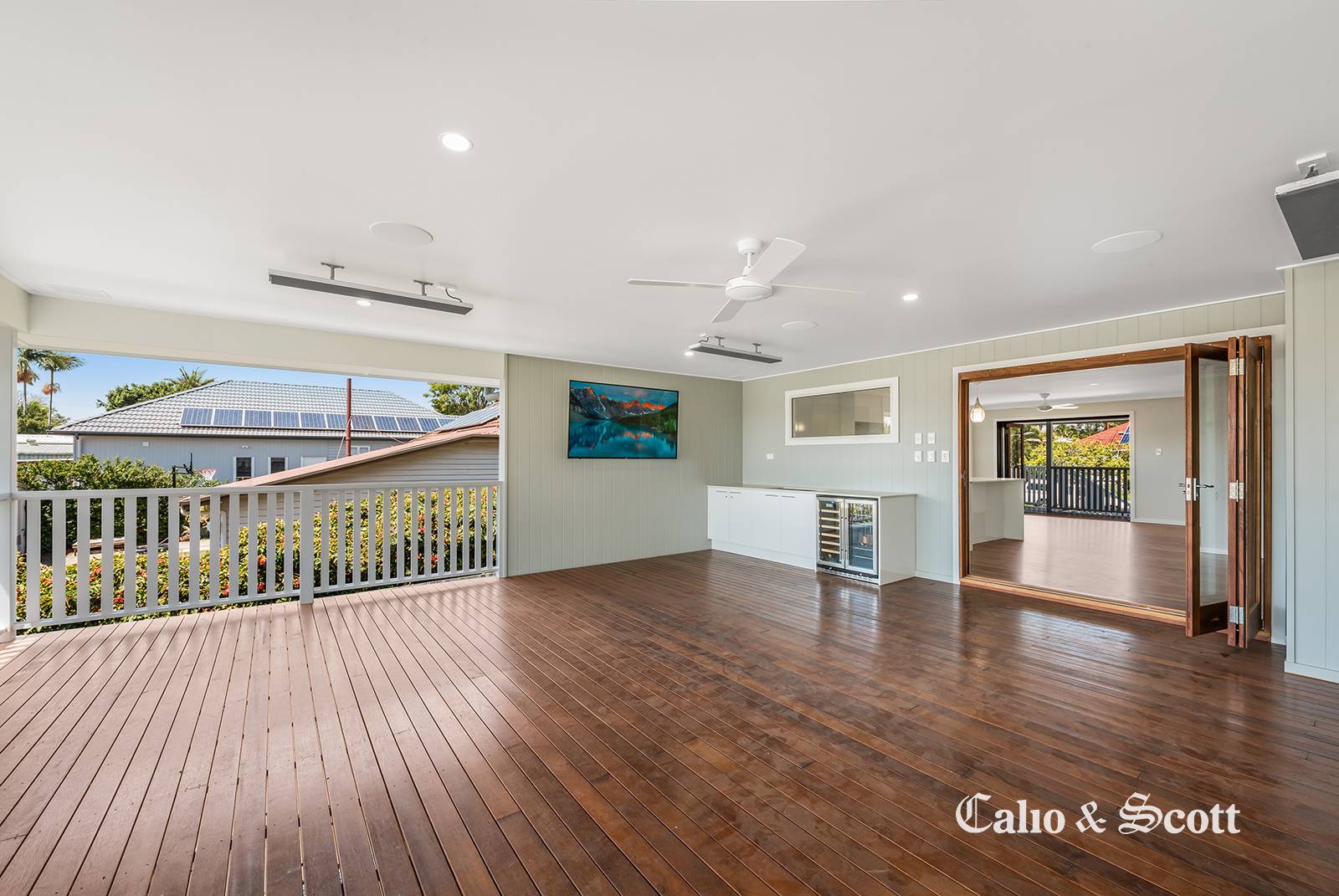 - Extremely large covered deck offering gas ceiling heaters, large wall mounted TV, speakers, built-in kitchentte with bar fridge;