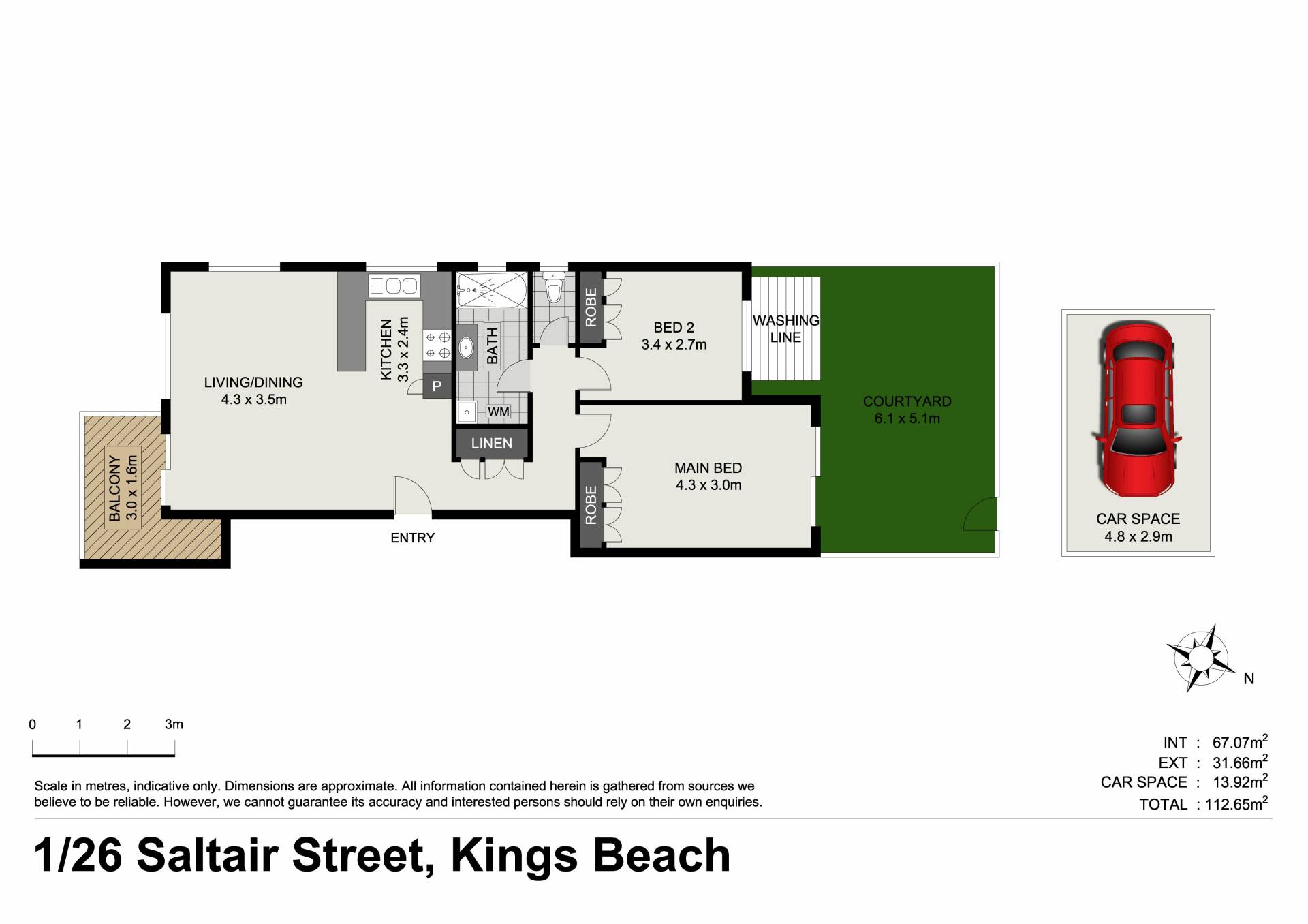 Convenient internal in-unit laundry space with external clothes line in your own courtyard;