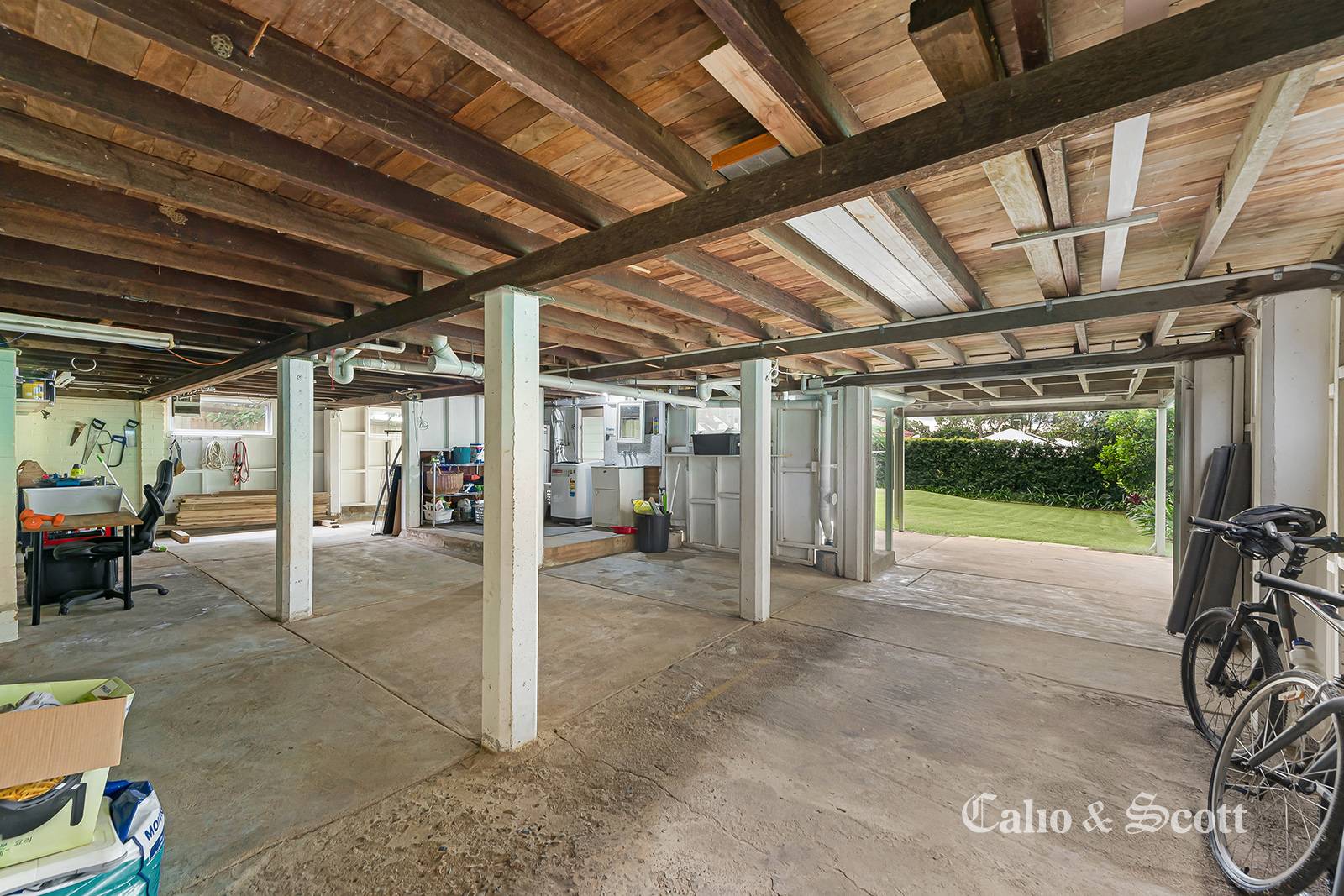 Downstairs there is plenty of room for storage and a handyman’s paradise which enjoys 6ft plus ceiling height.  The drive through garage allows for the parking of two vehicles plus an extra carport area which could accommodate a caravan or boat.  The rear yard is a blank canvass waiting on your final touches to create your own piece of heaven.