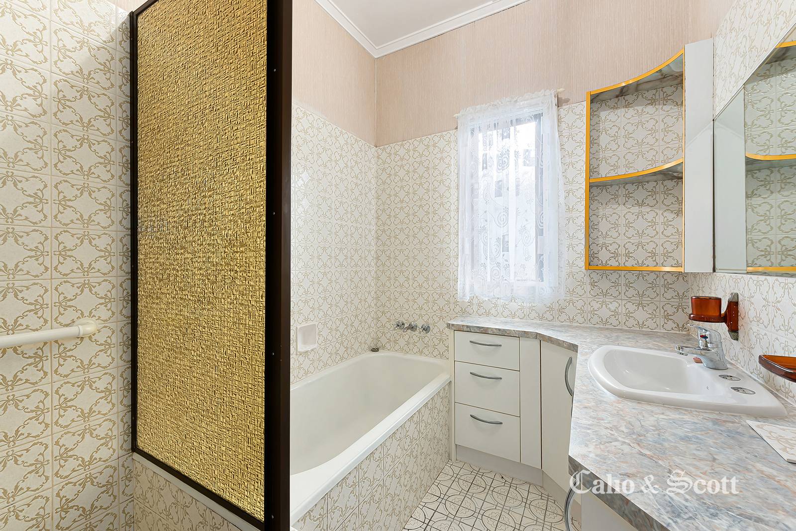 The neat retro kitchen has a wall oven and ample cupboard space and the updated bathroom has a separate shower recess and bath.