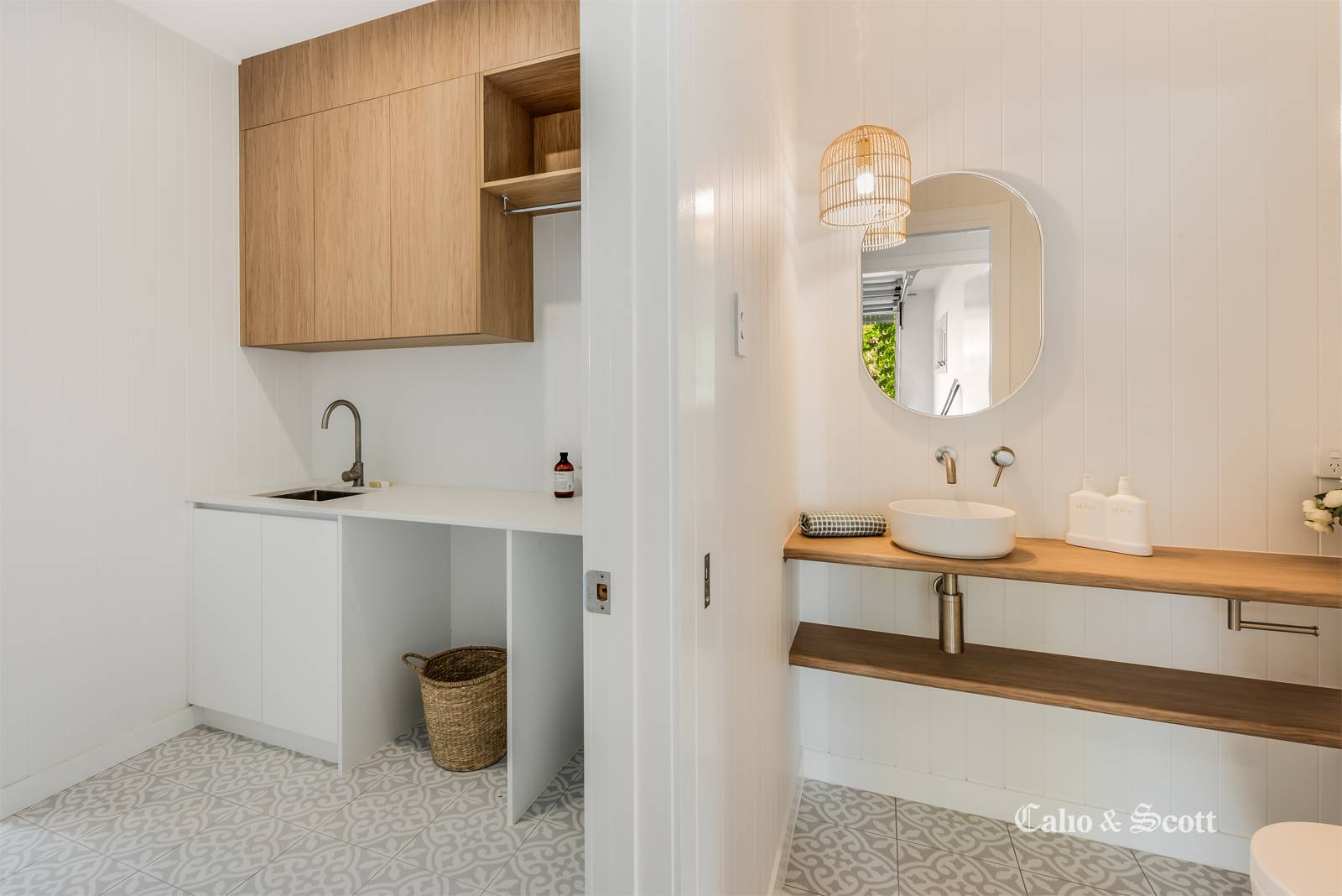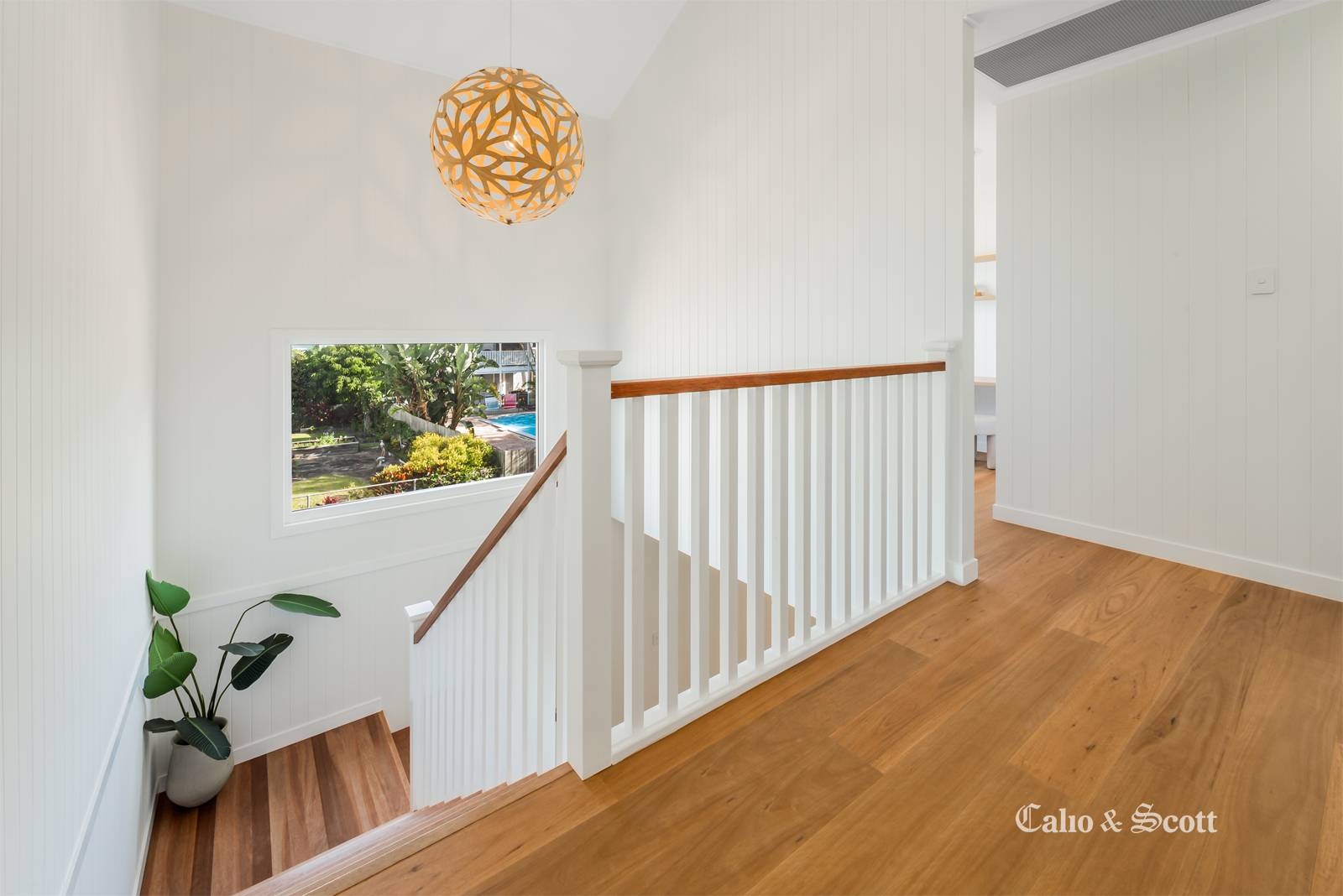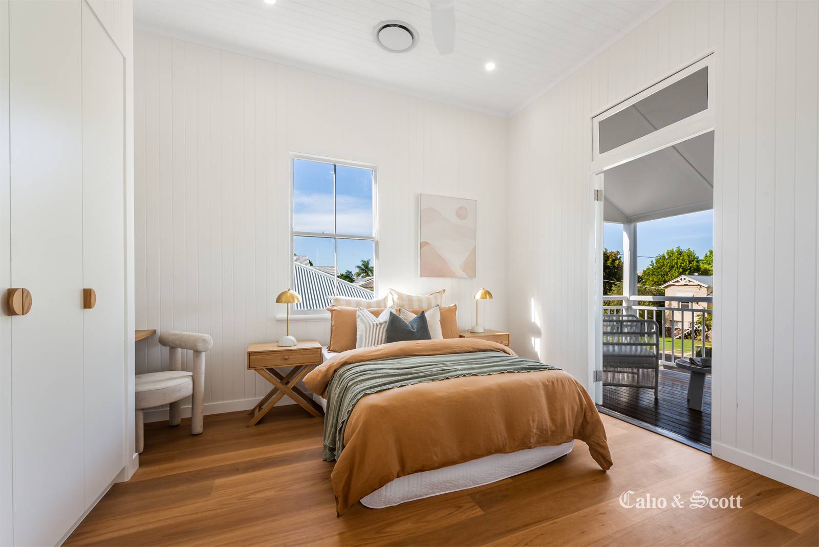 The Queenslander construction (ceiling heights up to 3.15m) allows the cool breezes to flow through the wide central hallway and into the spacious master bedroom.  This is a wonderful quiet retreat to retire at the end of the day with an elegant spa inspired ensuite with custom led lighting, custom walk-in robe for her and additional customised robe for him.