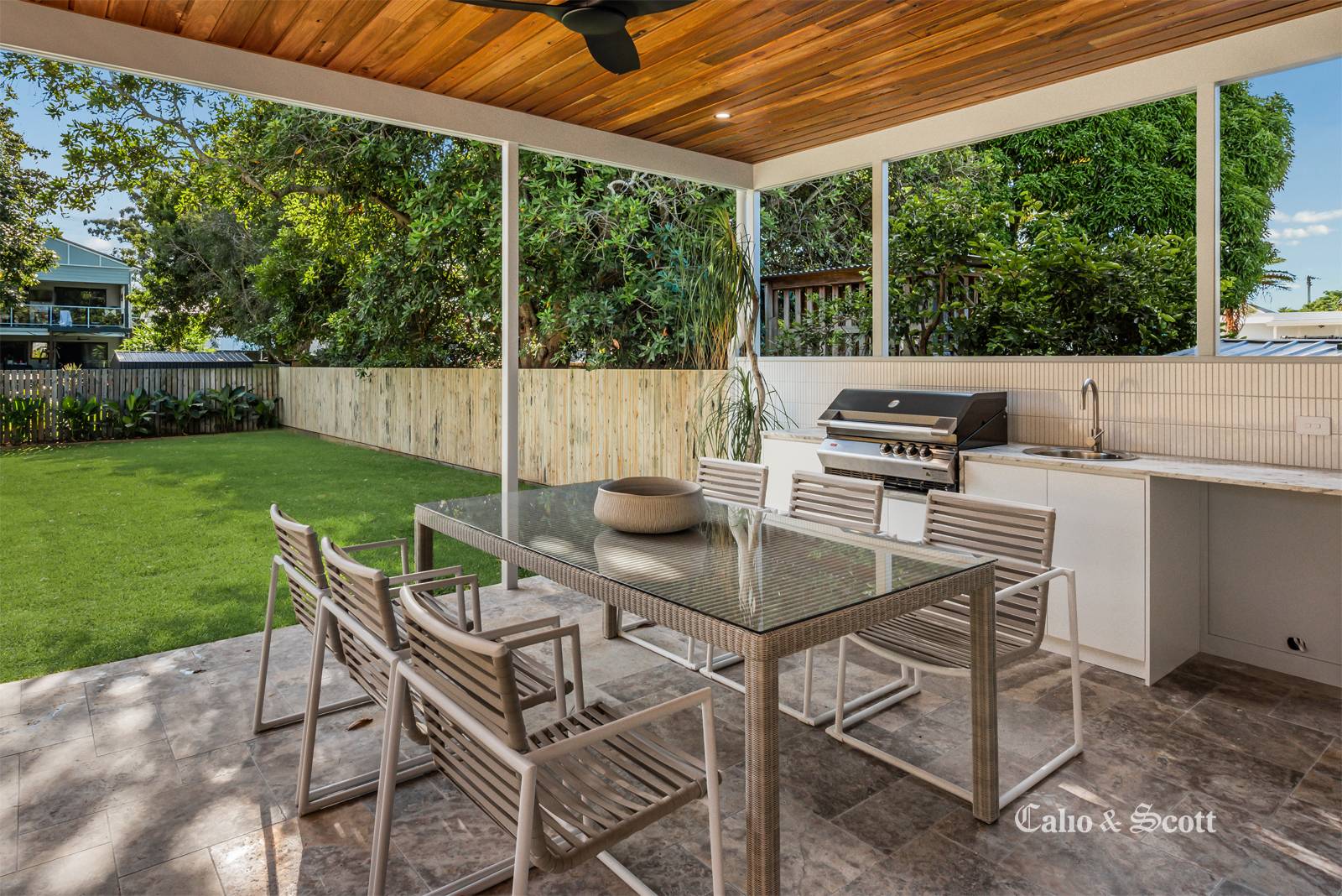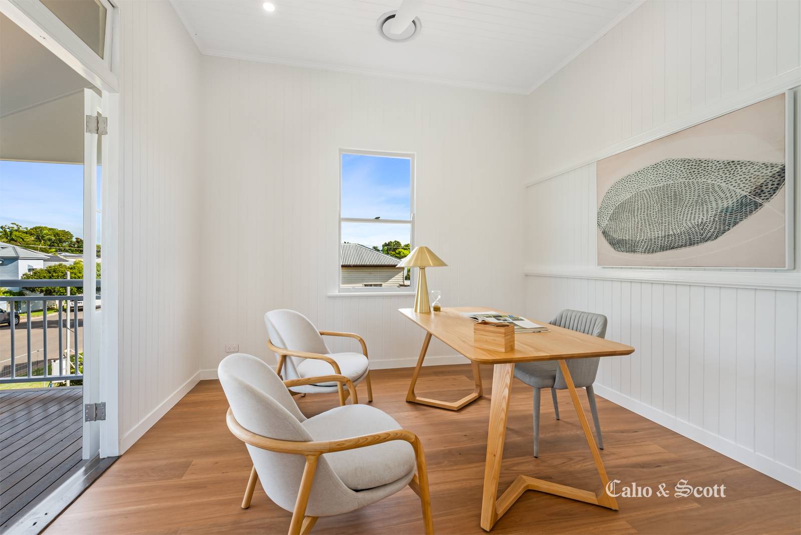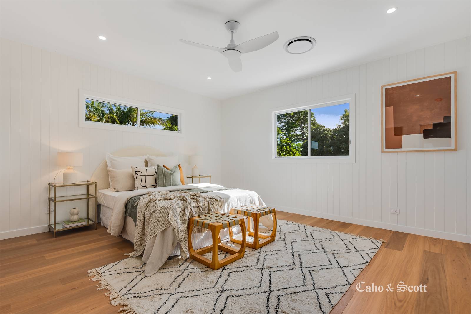 The Queenslander construction (ceiling heights up to 3.15m) allows the cool breezes to flow through the wide central hallway and into the spacious master bedroom.  This is a wonderful quiet retreat to retire at the end of the day with an elegant spa inspired ensuite with custom led lighting, custom walk-in robe for her and additional customised robe for him.
