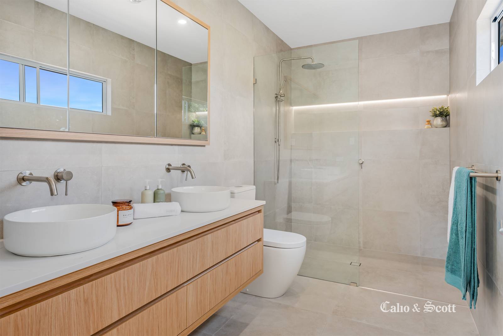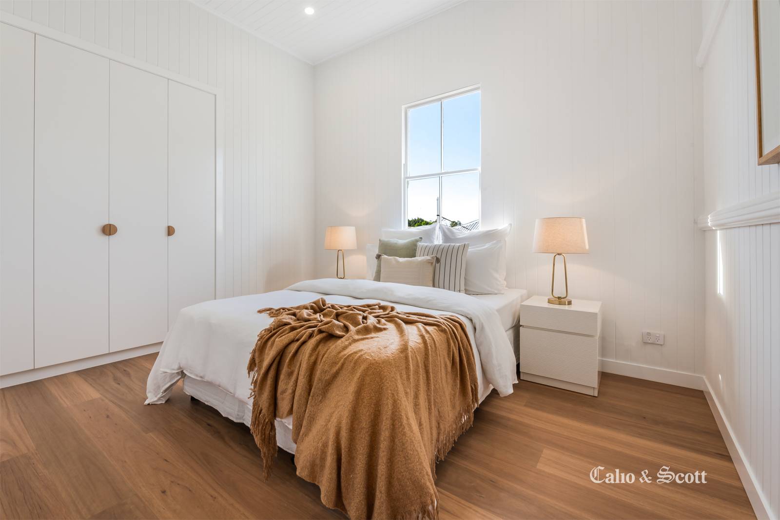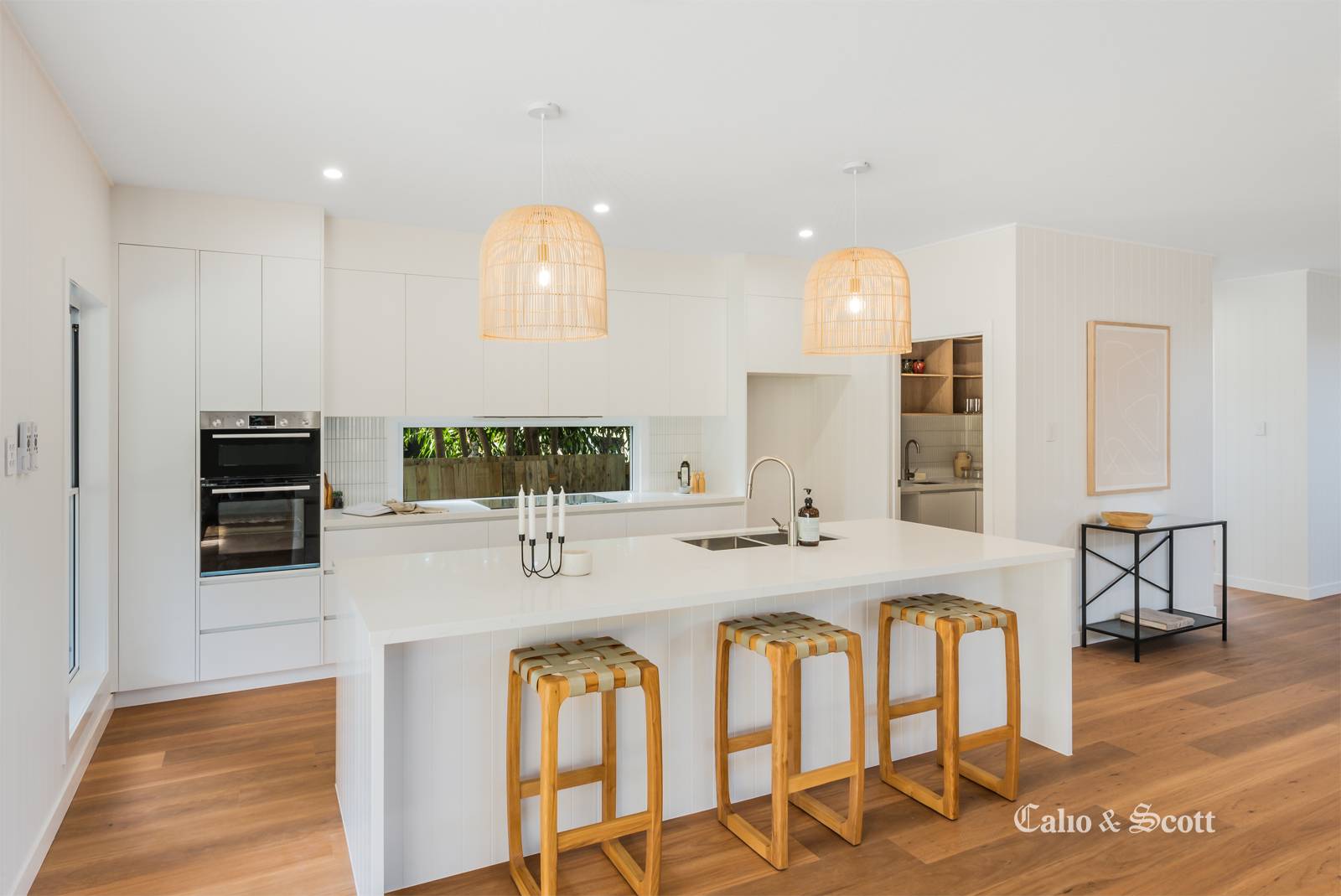 The lower level enjoys sweeping open plan living featuring tongue & groove walls, timber floors, 2.7m high ceilings and quality lighting & fixtures. Even smaller details are appreciated with clever additional built-in storage options for the new home owner’s benefit.