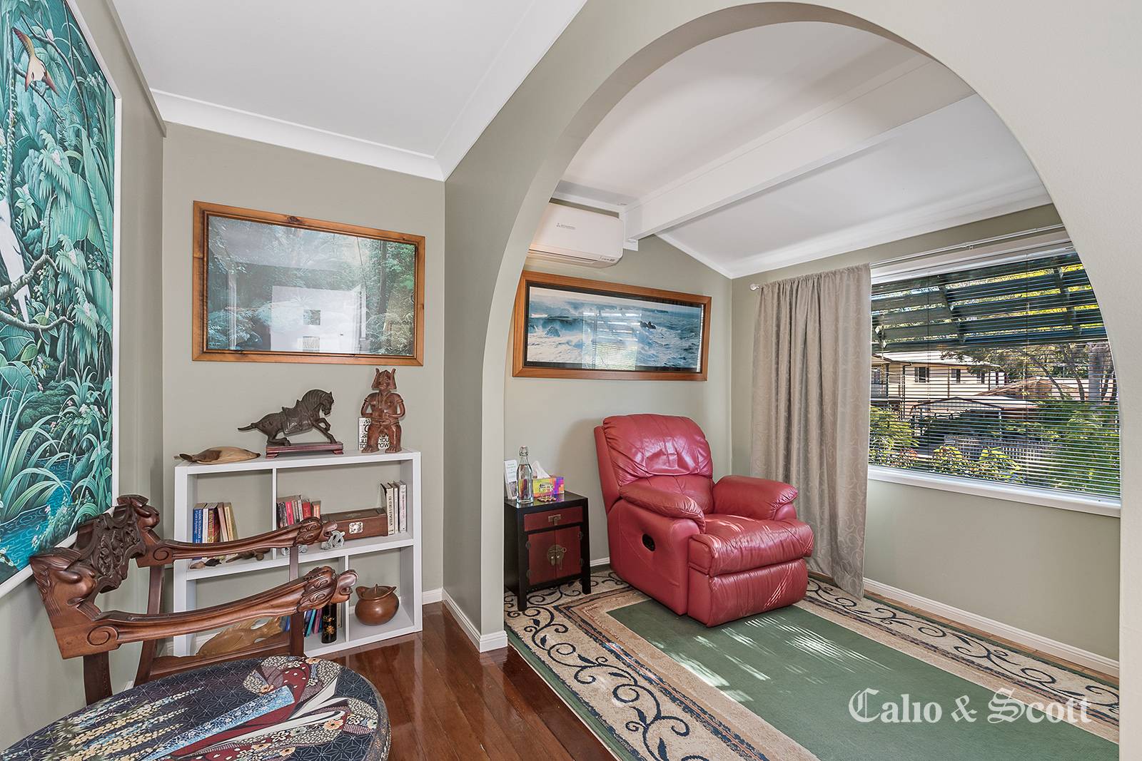 The current owners have modified the main living area to create a neat air conditioned office space for their home business at the front of the home, however, if this is not required, it can easily be converted back to the spacious open living room.