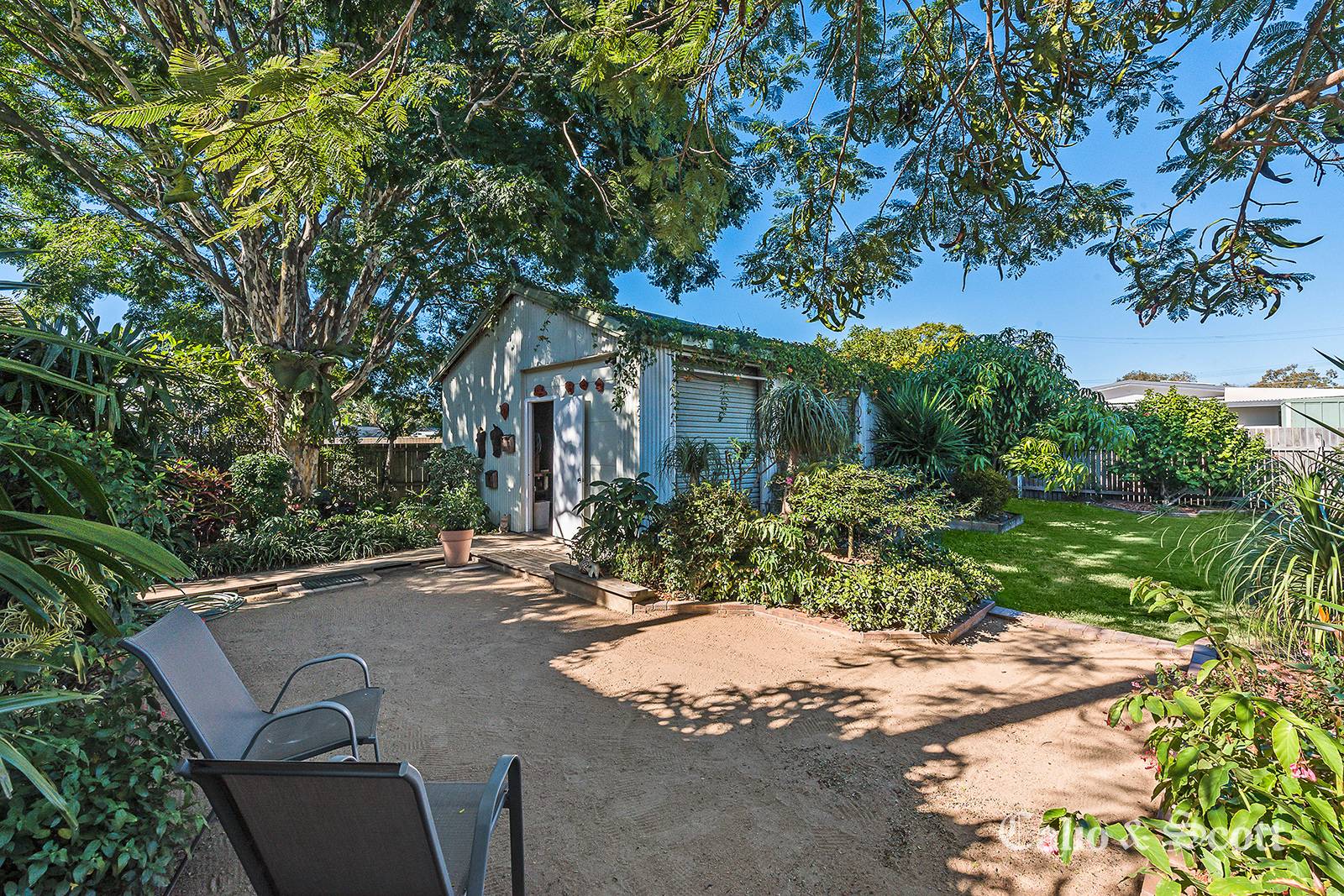 - Easy care established gardens with high private timber fencing.