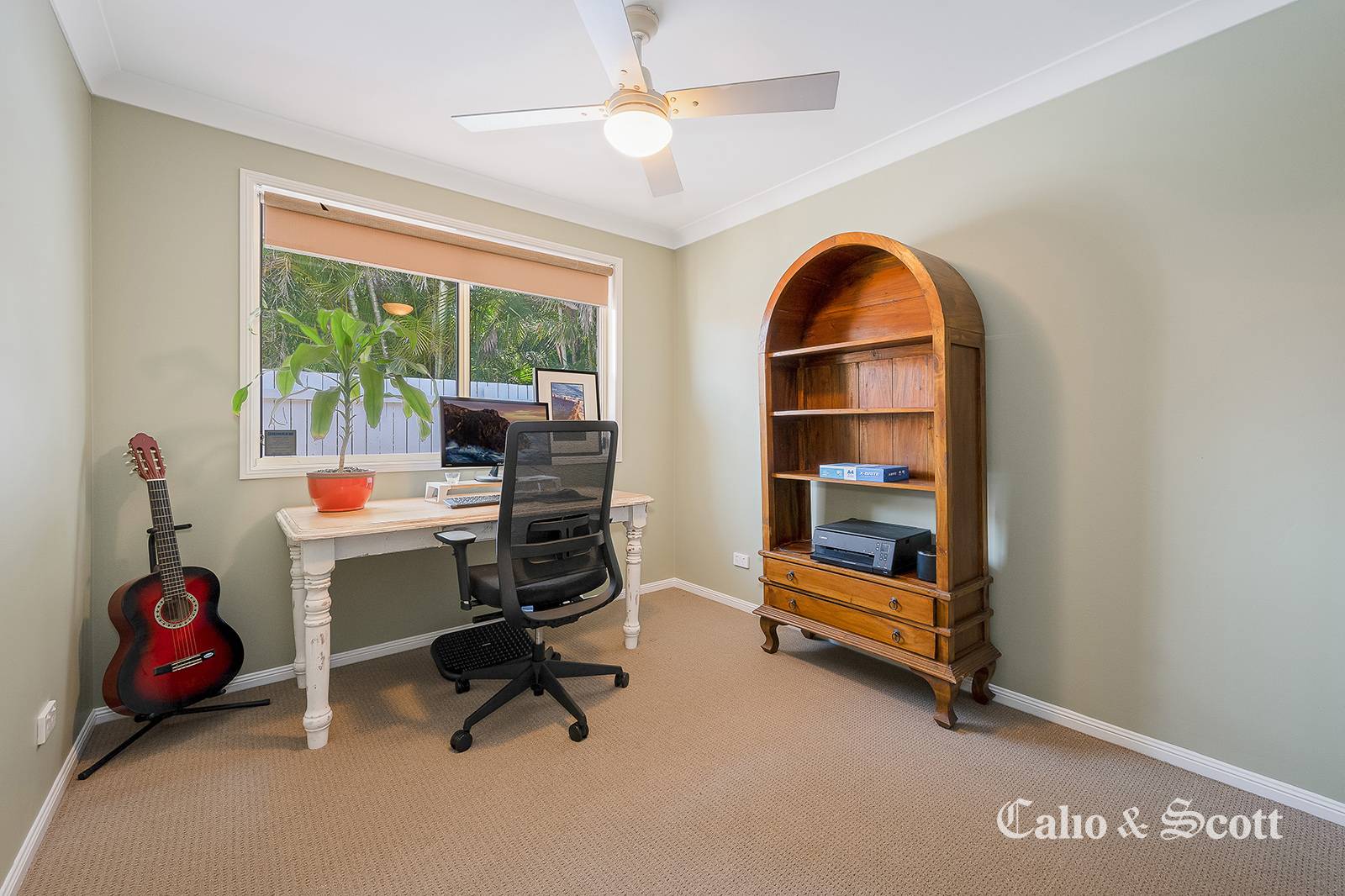 The residence boasts four generously sized bedrooms, 3 featuring built-in wardrobes and ceiling fans for optimal comfort. The air-conditioned master bedroom is a standout with its ensuite, walk through robe and separate dressing room providing you with your very own private retreat.  The family sized bathroom with separate WC ensures convenience during those busy mornings.