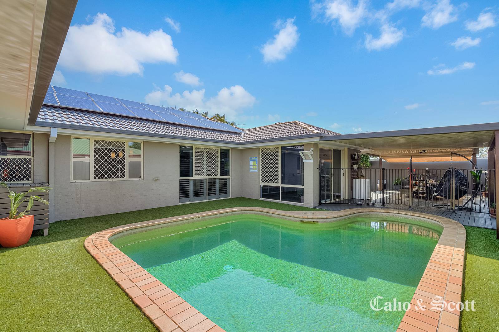 The air conditioned second living/family room offers direct access to a covered outdoor area with plenty of room for social gatherings and cool afternoon drinks. From this vantage point, you can oversee the low-maintenance yard, and sparkling inground salt water swimming pool!  The large windows draw the outside in and your privacy is assured with high secure fencing.