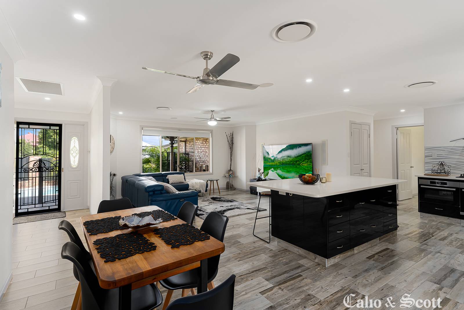 The kitchen overlooks the rear family room which captures the morning sun and is the perfect light filled space to relax or a haven for entertaining friends and family.  Walk out from the family room to a separate pergola area or enjoy a second external undercover patio with blinds to keep the weather out and the warmth in during the coolest of our winter days. All year round indoor/outdoor Queensland living at its best.