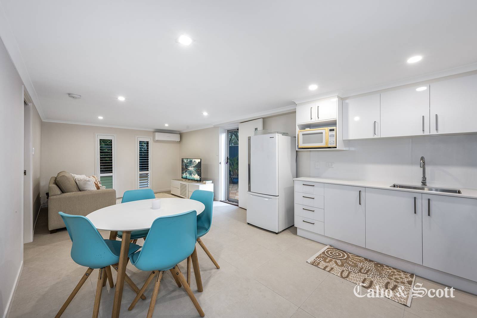 Complementing the upper level is a dual living lower level. With a clever design, tiled throughout, this level offers privacy & security for parents or teenagers with a spacious living room and a fully functional kitchenette two additional rooms (one currently being used as a home office), a recently renovated bathroom, spacious laundry with volumes of storage options all with access to a side covered patio and three 3 x remote garage spaces for secure parking.