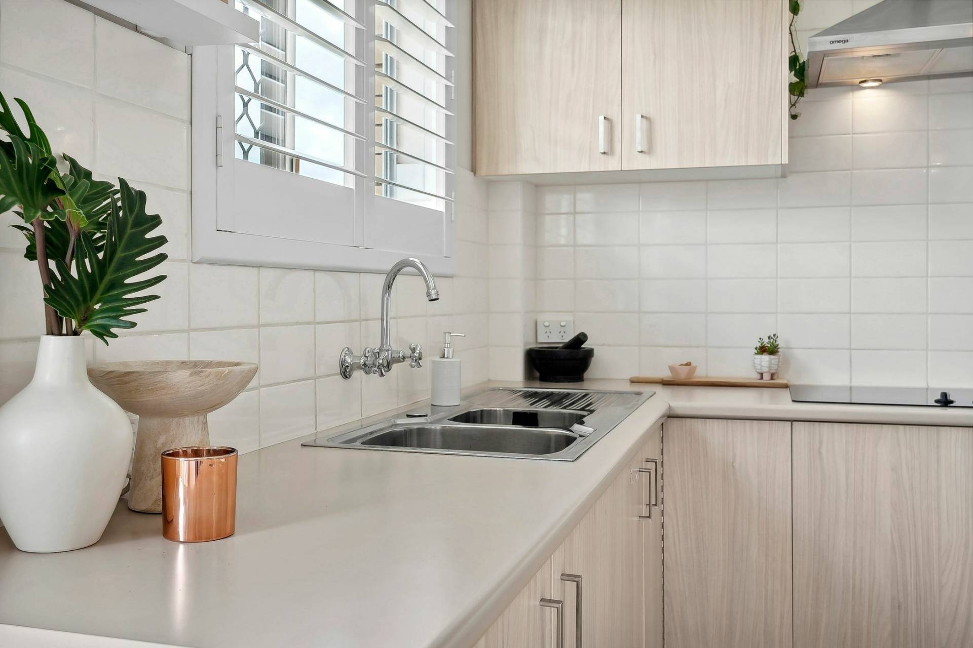 Private and peaceful inside, this well presented home makes a marvelous first impression with a beautifully-proportioned layout situated on the first level of a solid six-unit brick complex.  Bright and spacious with open plan interior spreading out on both sides to sweet sunny balconies with large glass sliders inviting cross-flow breezes throughout. The larger balcony has external louvres and blinds which create a private space for you to enjoy your morning coffee, chat with friends over an afternoon cocktail or simply enjoy the peace & quiet to read a book.