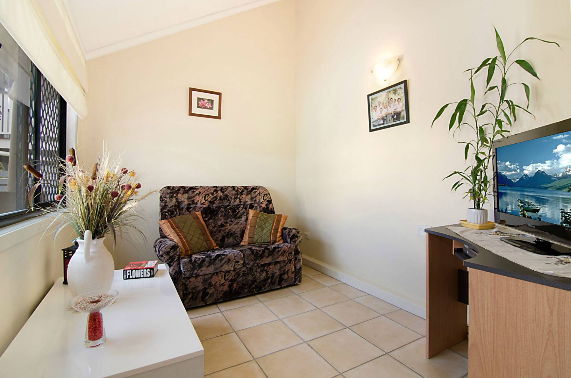 Venture downstairs to a tiled sitting room to enjoy a quiet book. There is a separate study area with linen storage, near the laundry complete with second WC.