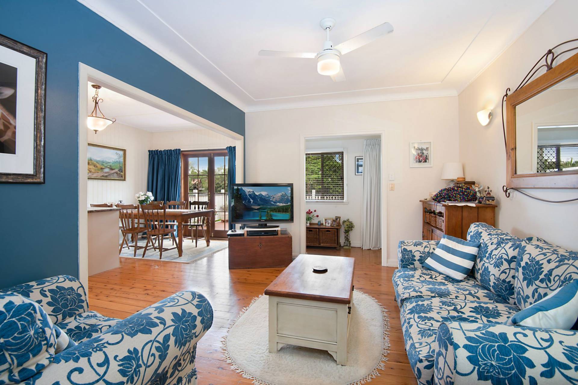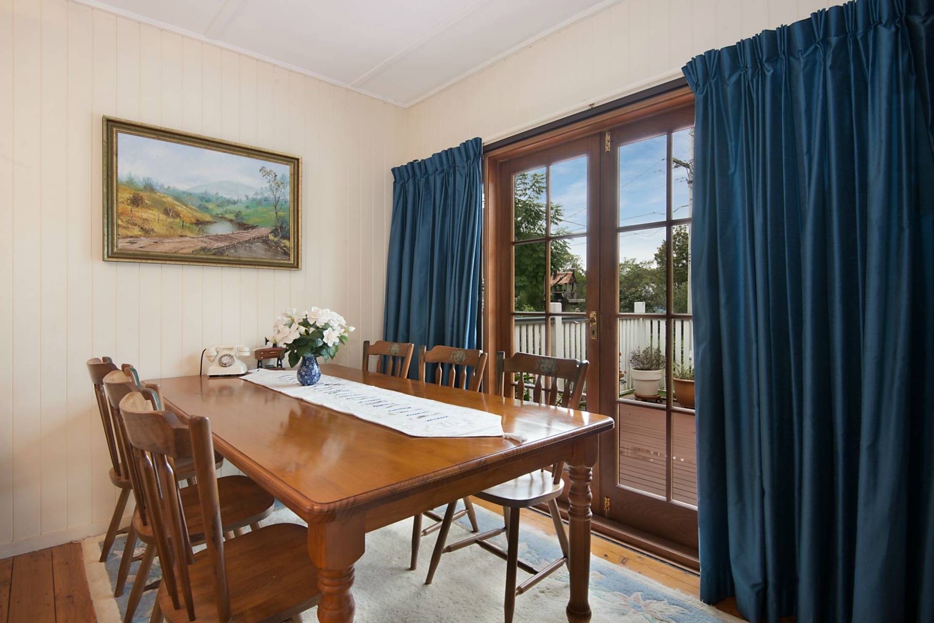 Thoughtfully designed, the dining area steps out to the front deck via French doors and ornate plaster ceilings and cornices are a feature.