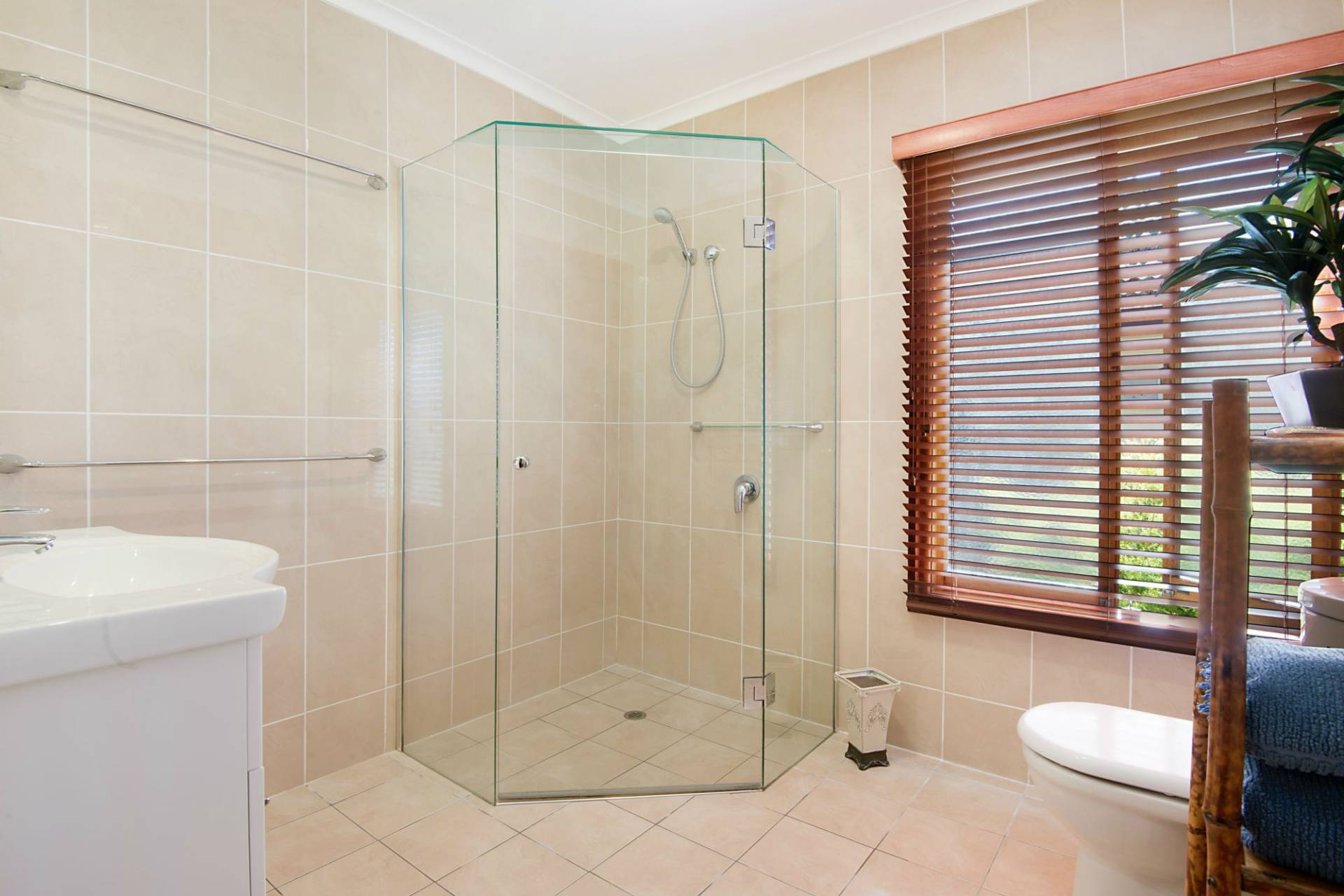The huge main bedroom & generous size ensuite include restored & handsome timber casement windows & timber venetian blinds.