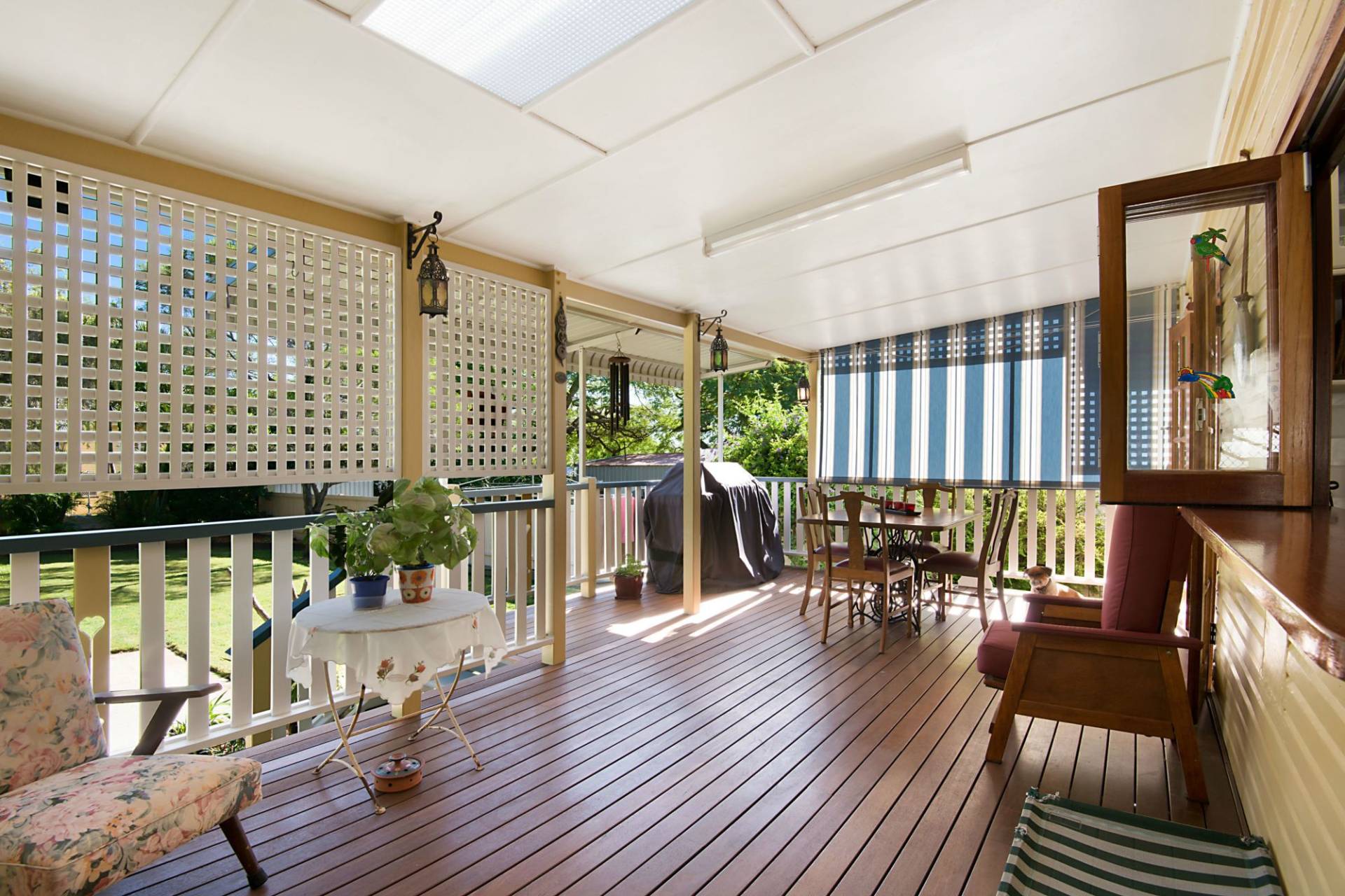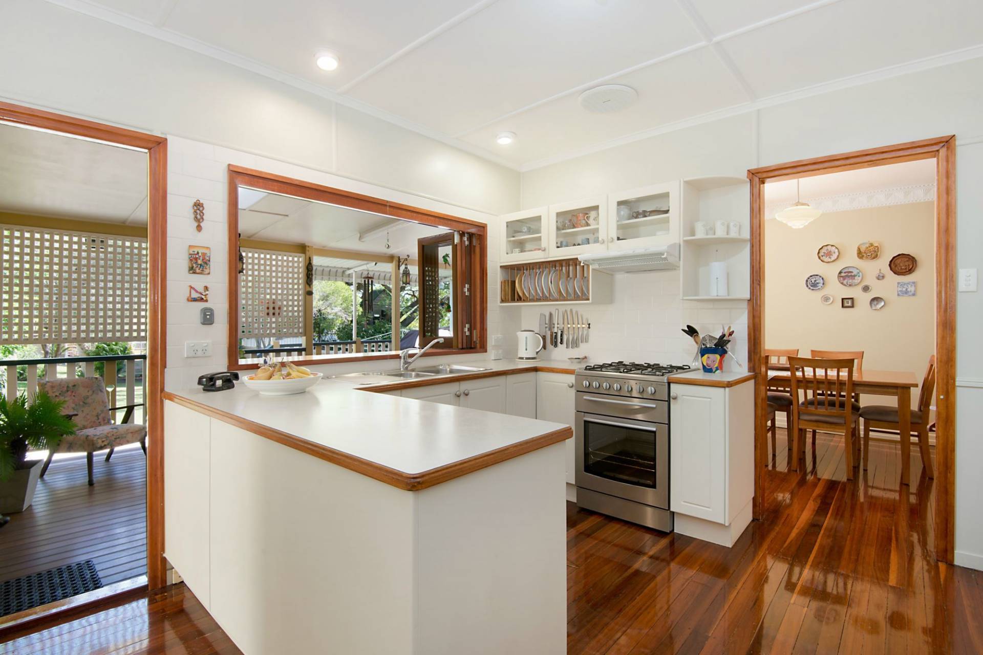 The well designed kitchen with pantry has a splendid large opening window servery to a private rear deck for entertaining your guests or family.