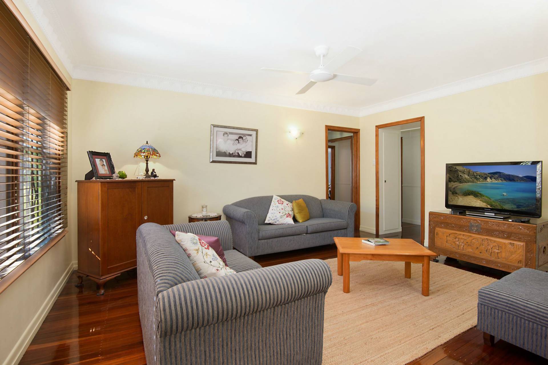 You are welcomed into the home by a stylish entry leading to impressive polished timber floors & ornate plaster ceilings.