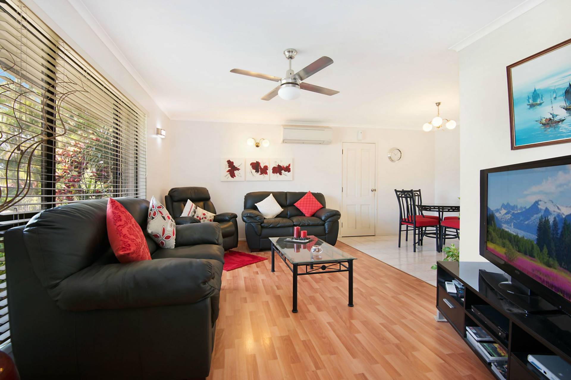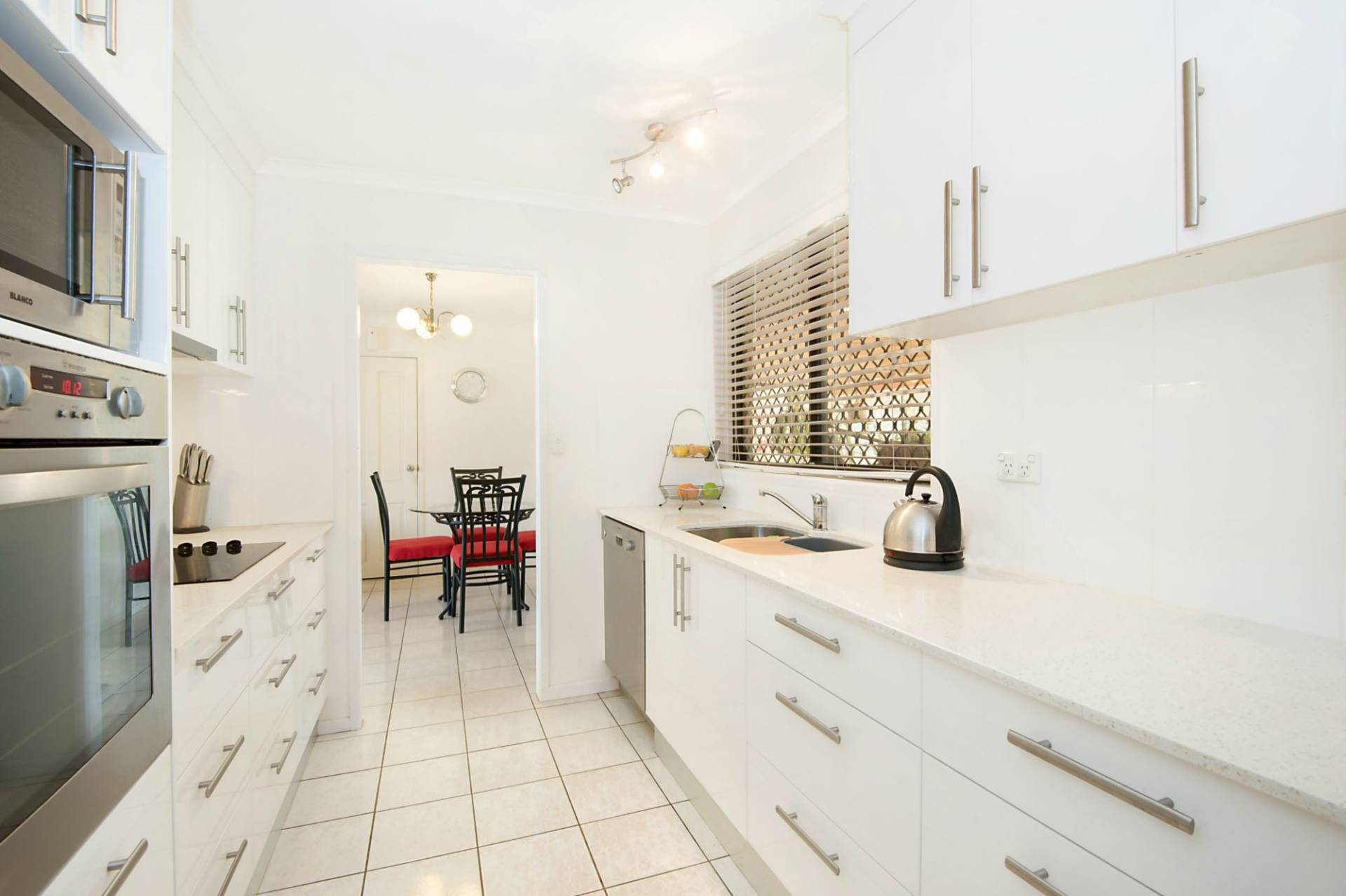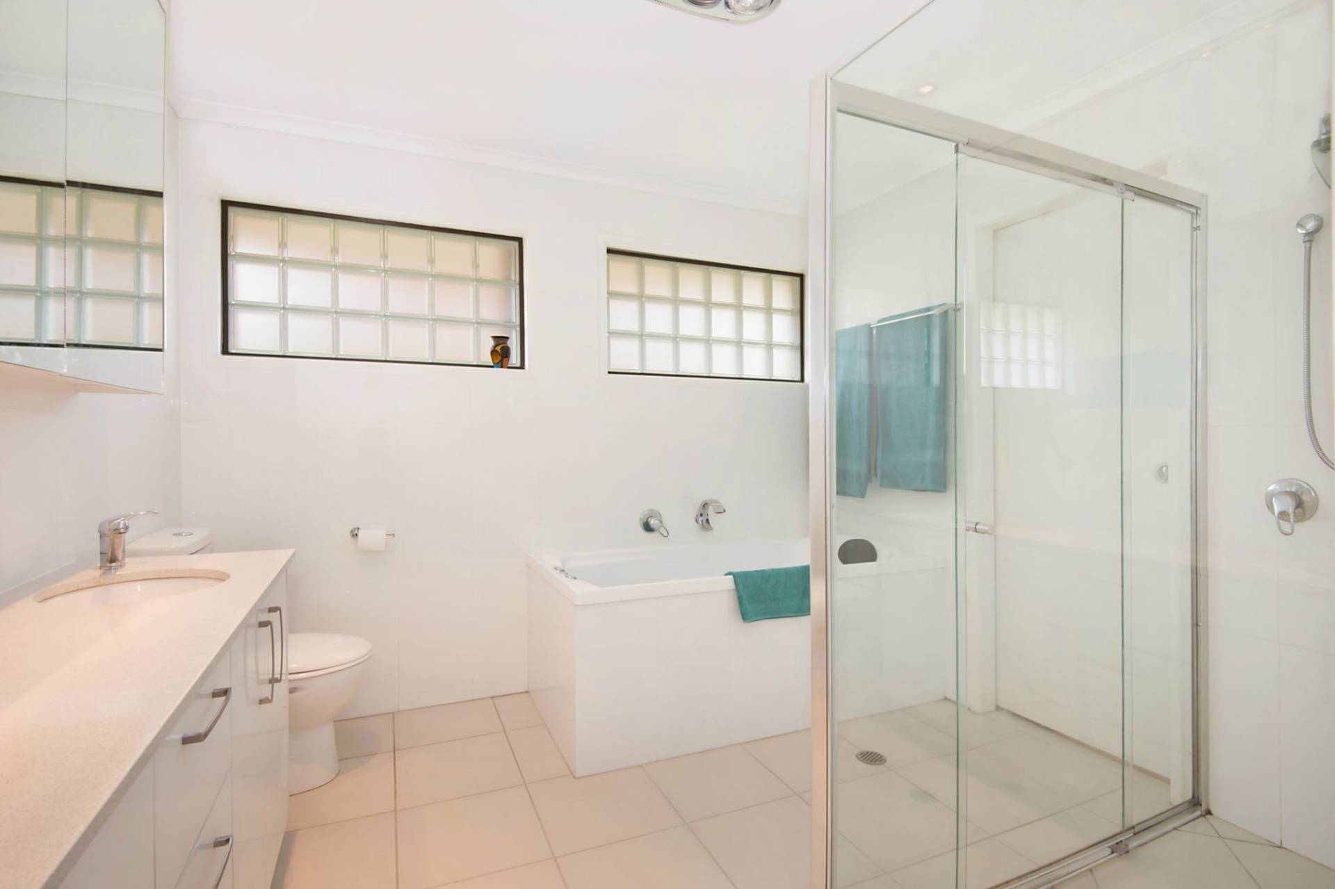 2 of the 3 bedrooms are built-in with the main bedroom accessible to the two way bathroom which has a separate spa bath, twin vanity and large double shower recess.