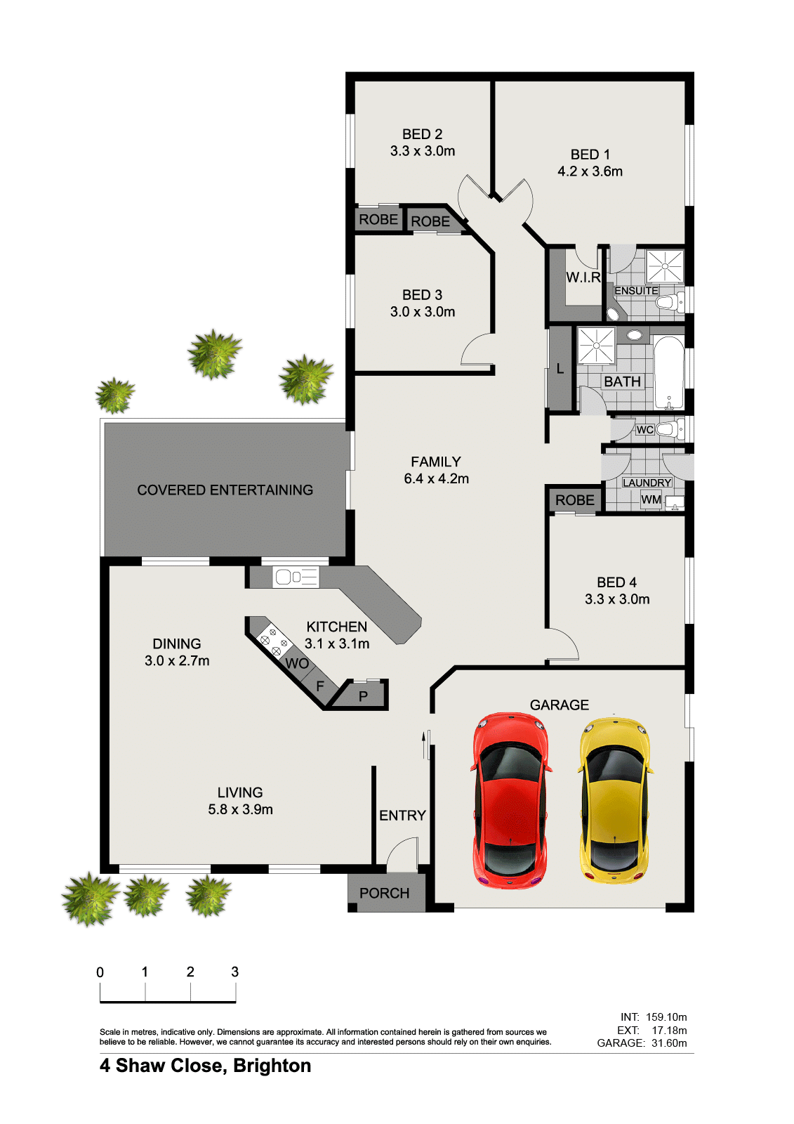 * Big 746m2 landscaped yard with established fruit trees and ample room for a pool