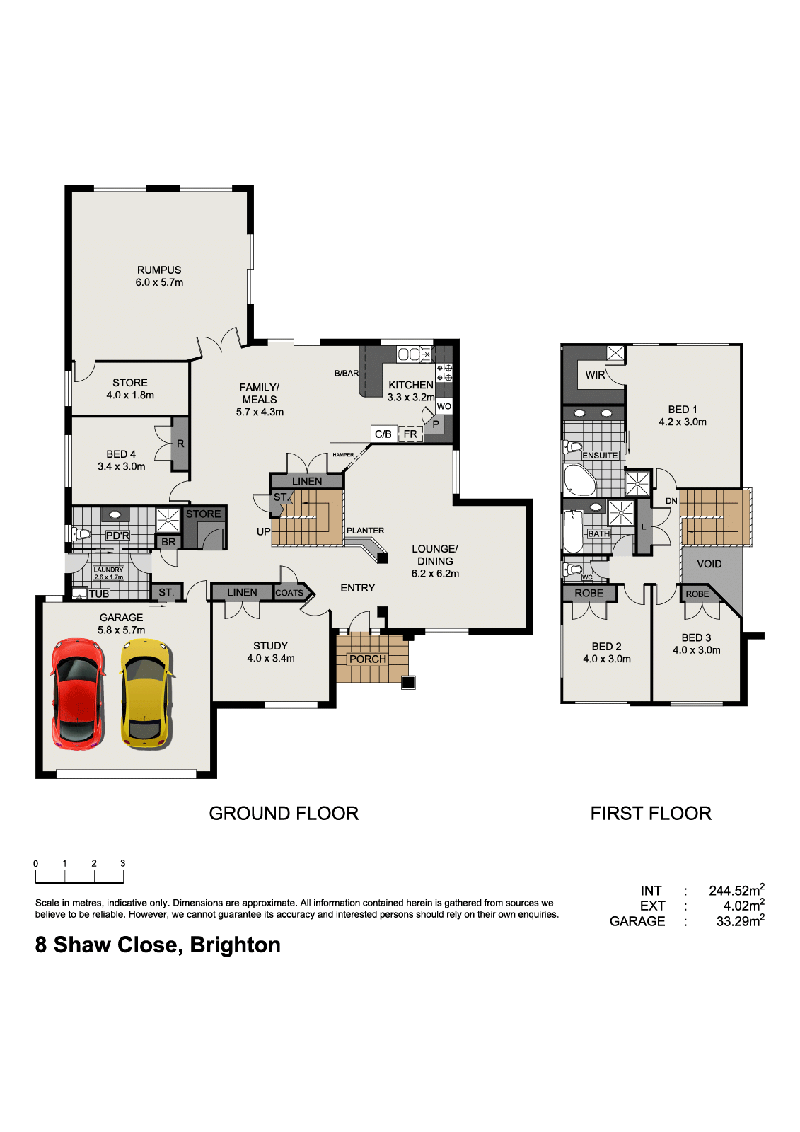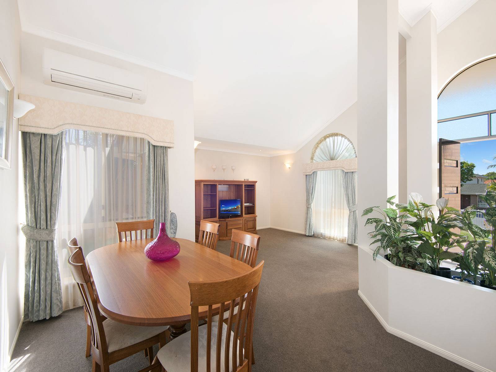 Internal stairs lead up to three bedrooms including air conditioned main with ensuite, spa bath, twin vanities and walk in robe.