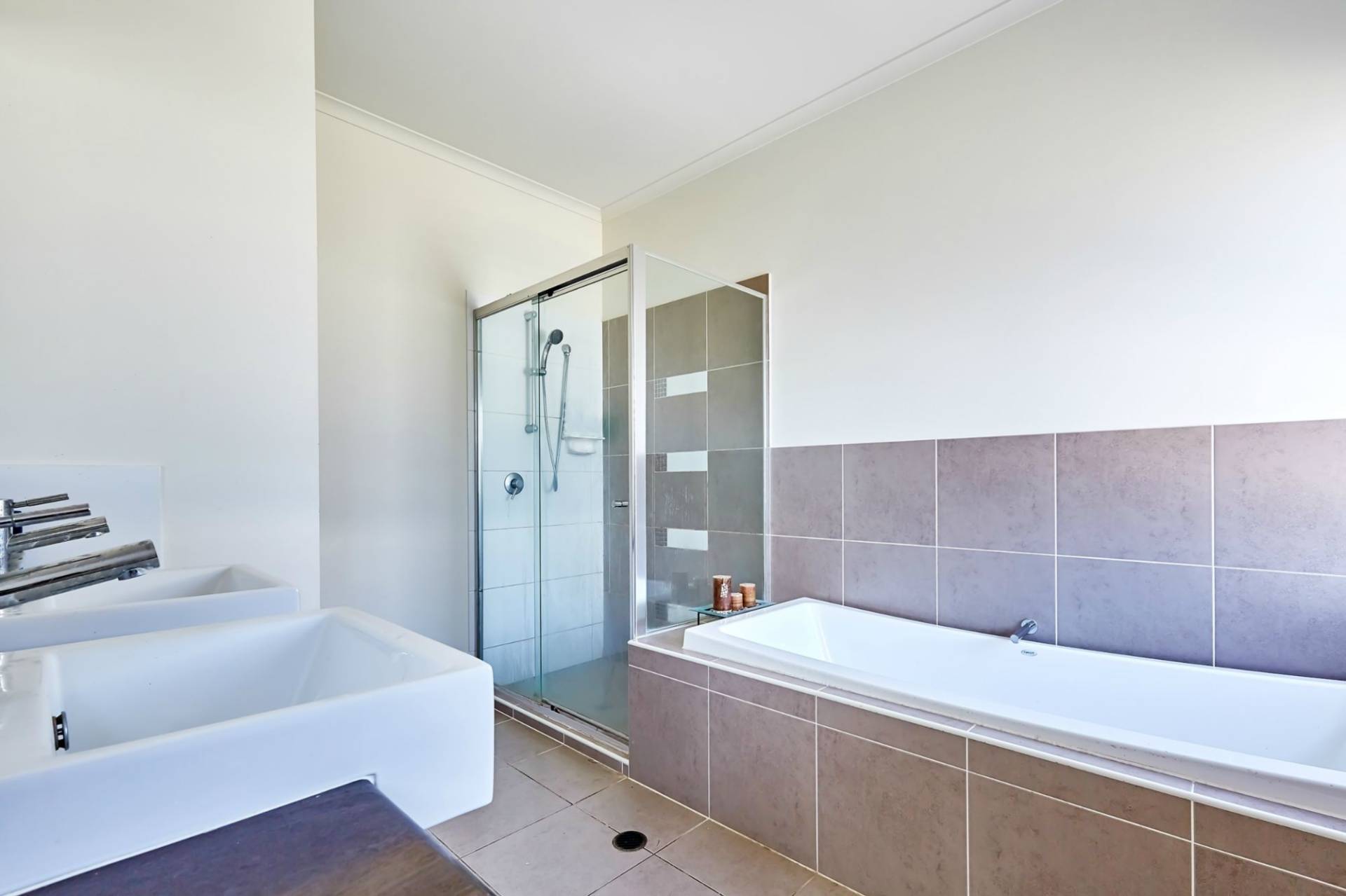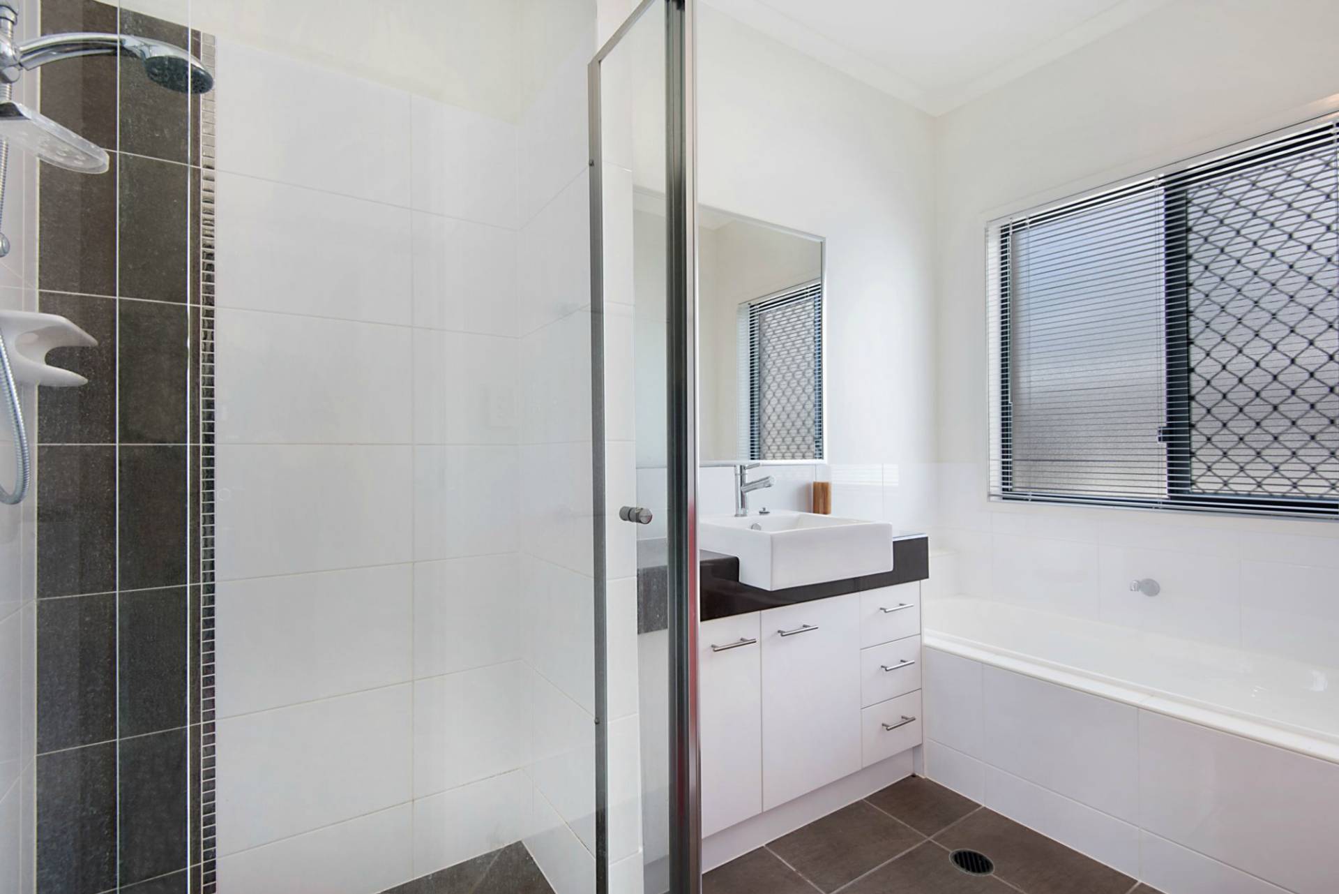 Internal stairs lead up to an amazing master bedroom with private deck, large ensuite with deep bath, twin vanities and separate big walk-in robe.