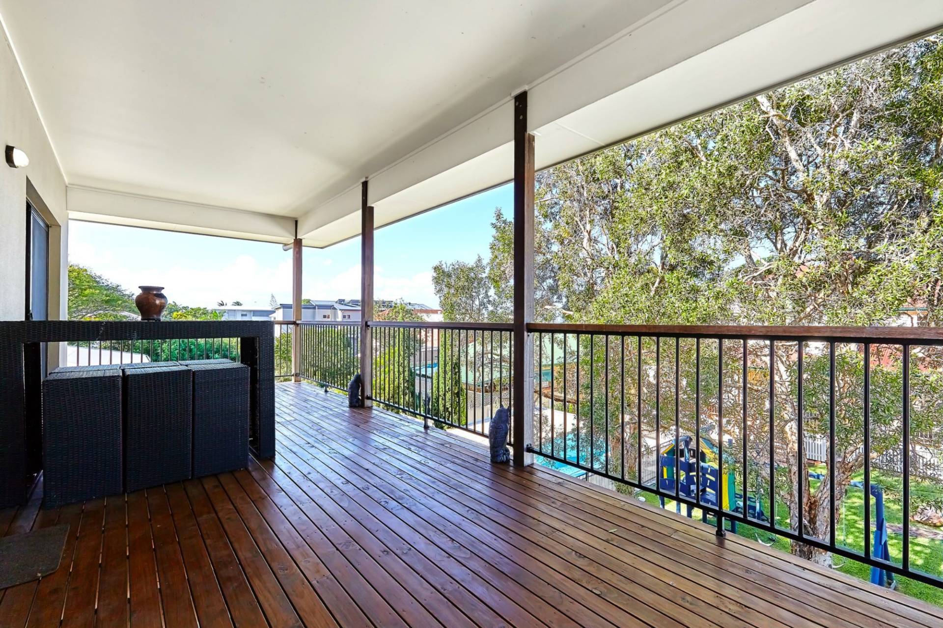 All bedrooms have built-in robes and the rear bedroom, family room and fabulous rear deck have bay views to Woody Point and beyond.