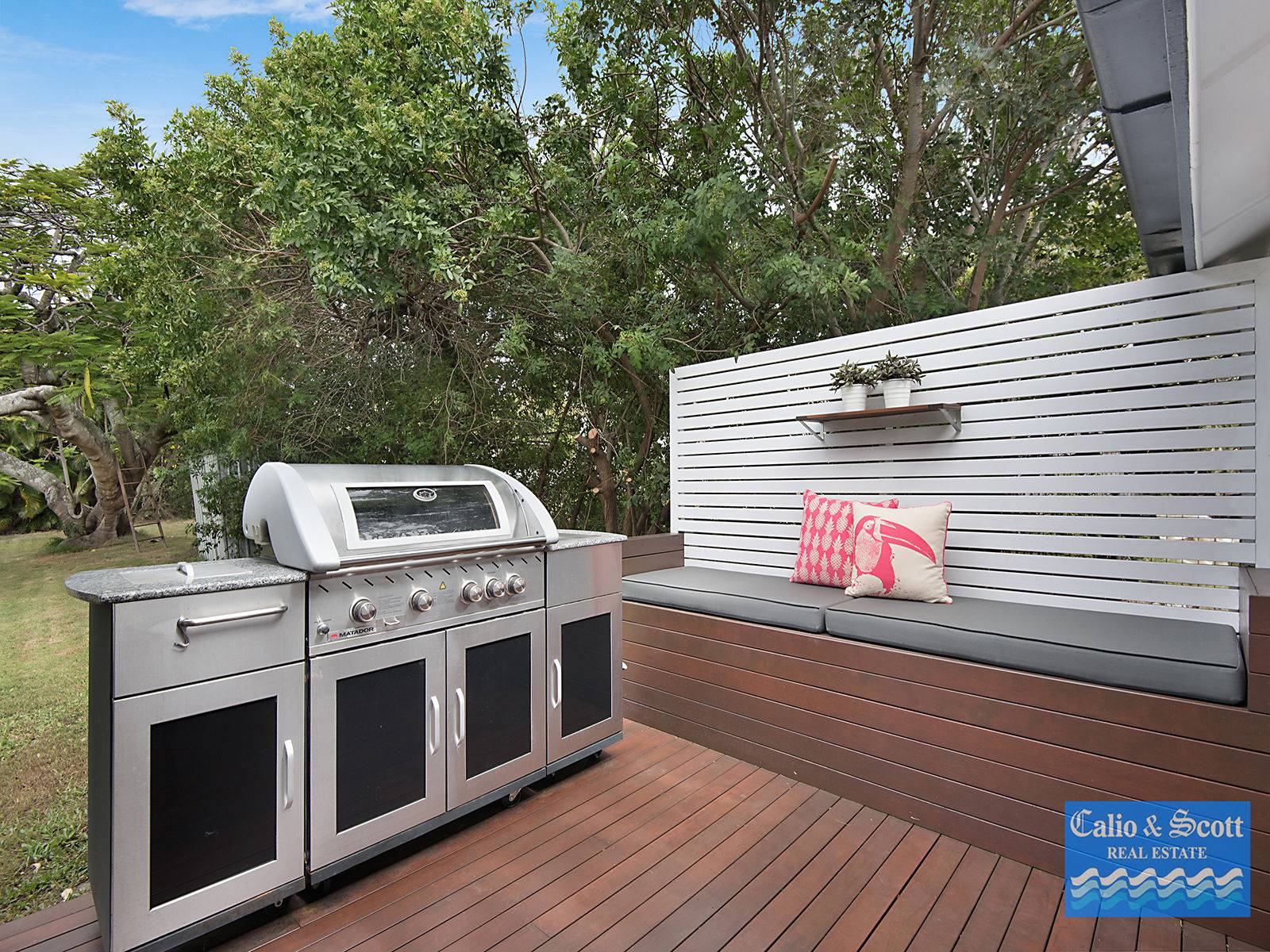 The open plan kitchen, dining and lounge features polished floors, island bench dining and modern stainless steel appliances. There are ceiling fans and air conditioning for your comfort, and all rooms feature plantation shutters for privacy.