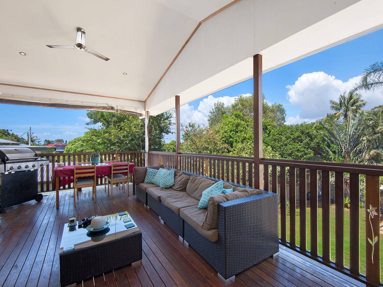 The full width rear deck is perfect for entertaining family and guests and overlooks a lush lawn with ample room to install an in ground pool.