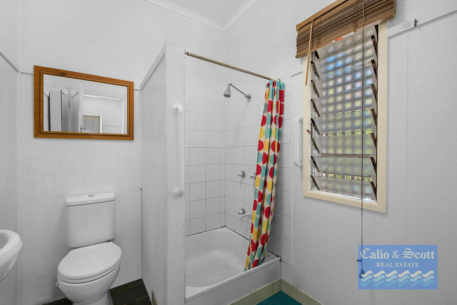 There is a shower over a plunge bath in the bathroom and a bonus 2nd w.c at the end of the hallway.